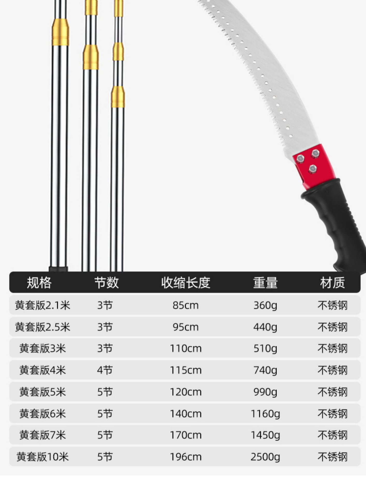 • 2.5m 금 강화 막대 + 높은 가지 톱(3개 세트 포함)