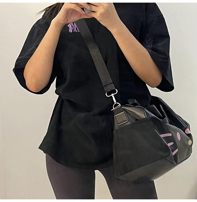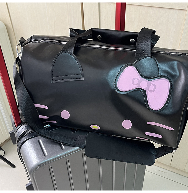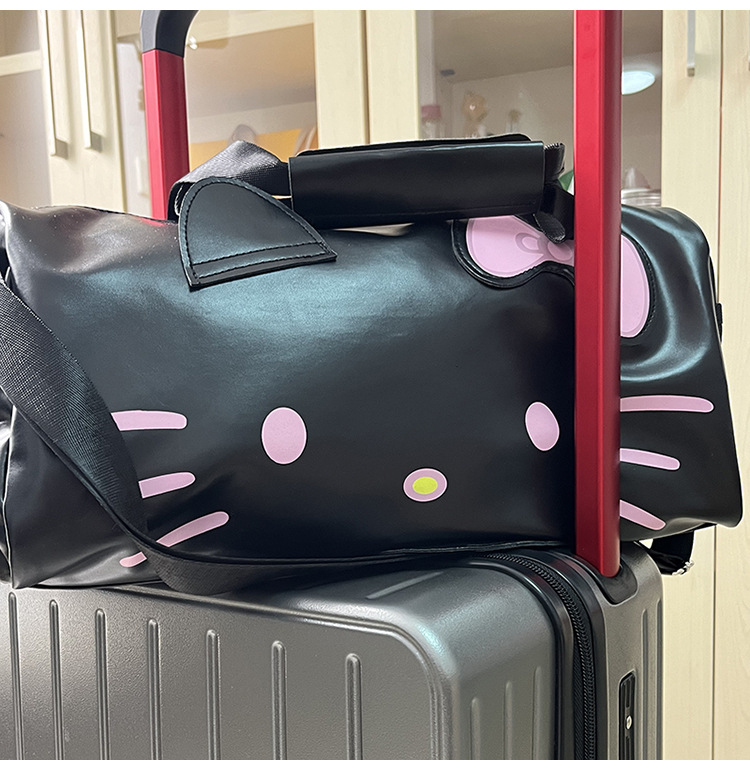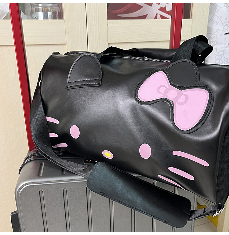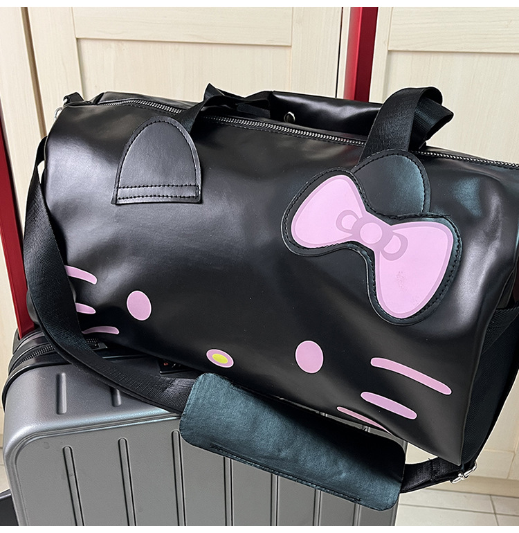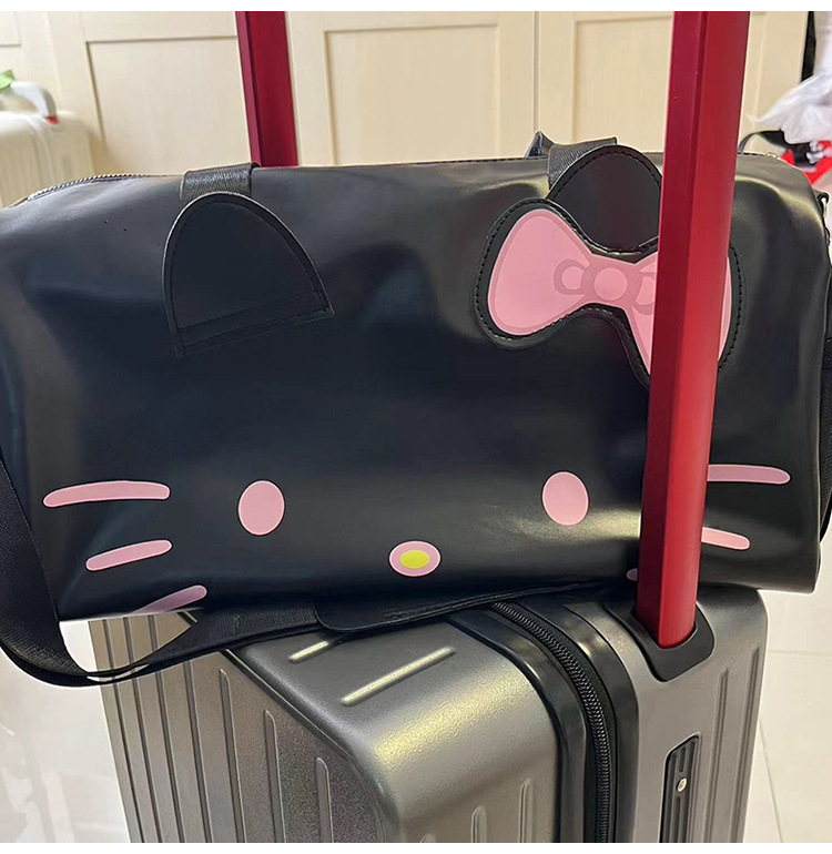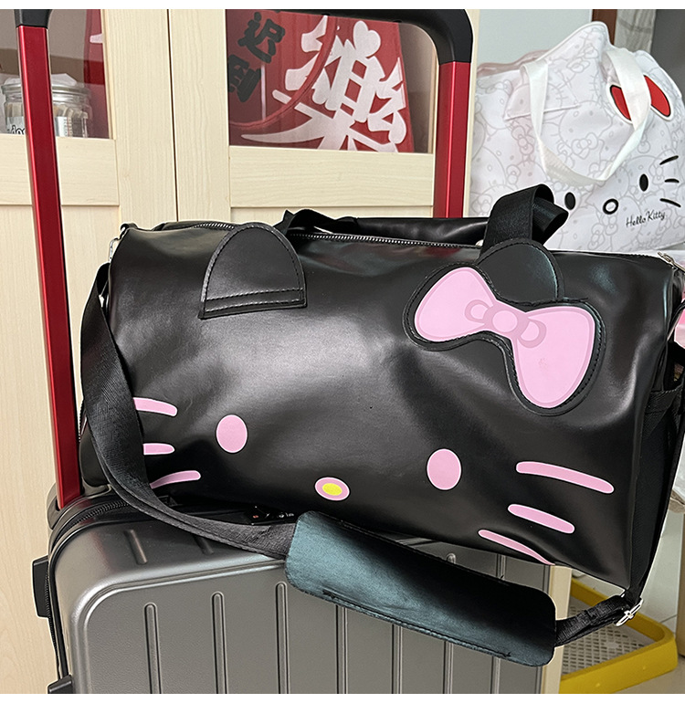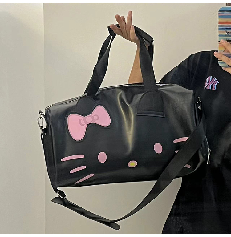 헬로 키티 만화 귀여운 큰 가방 어깨 검은 가죽 헬로 키티 휴대용 체육관 가방 크로스 바디 여행 가방 트렌디스토어 가기