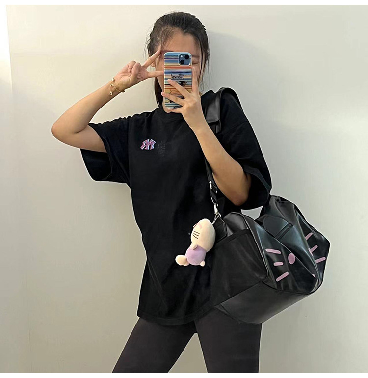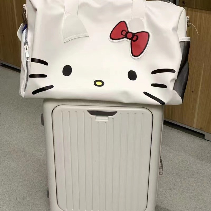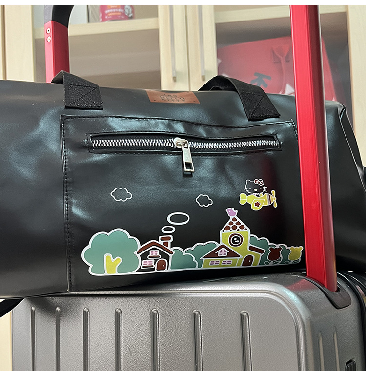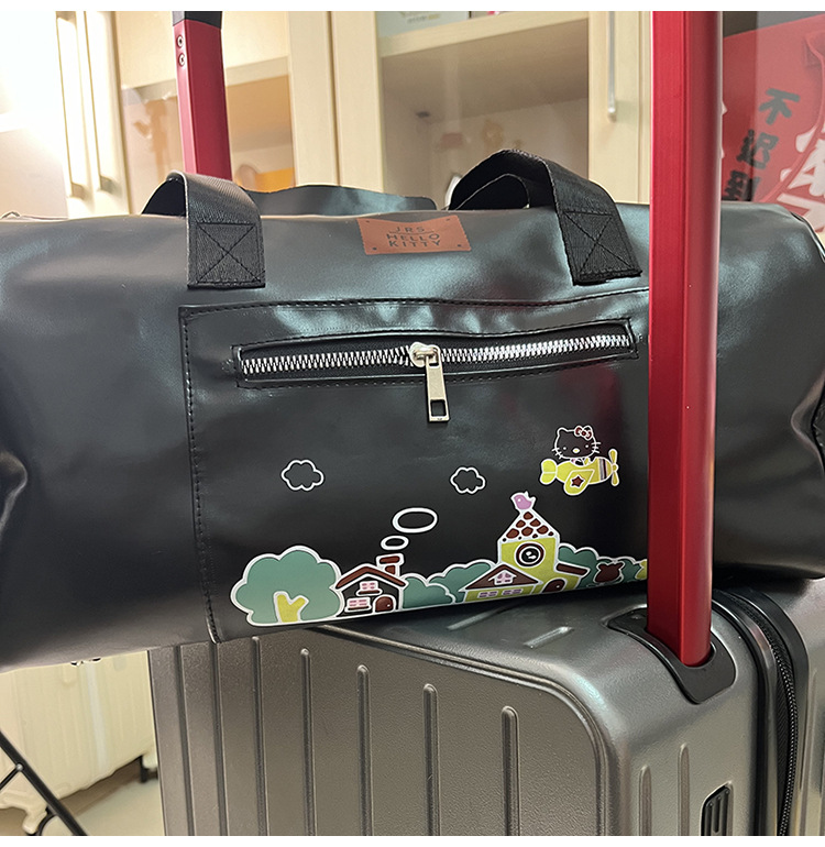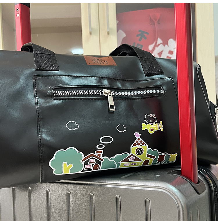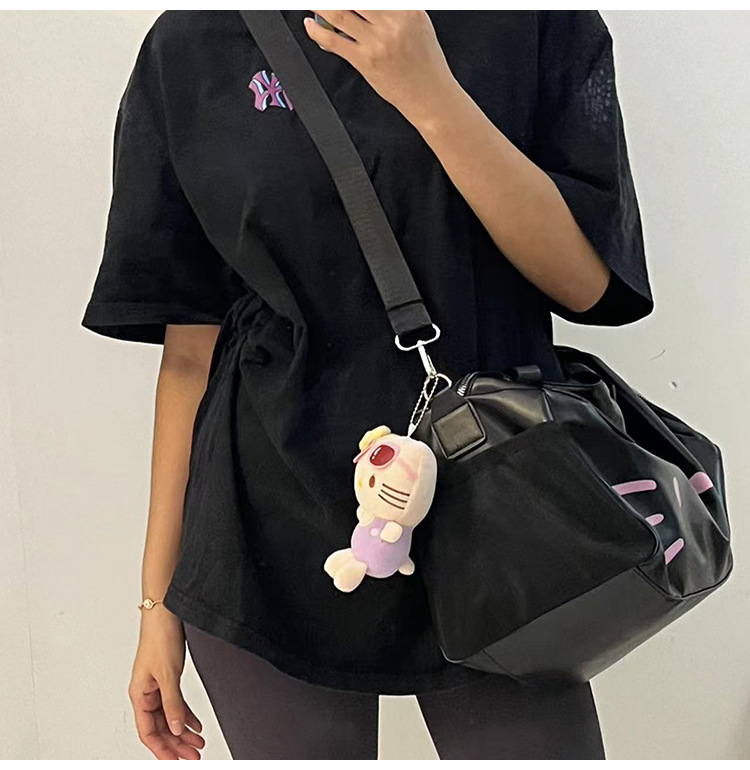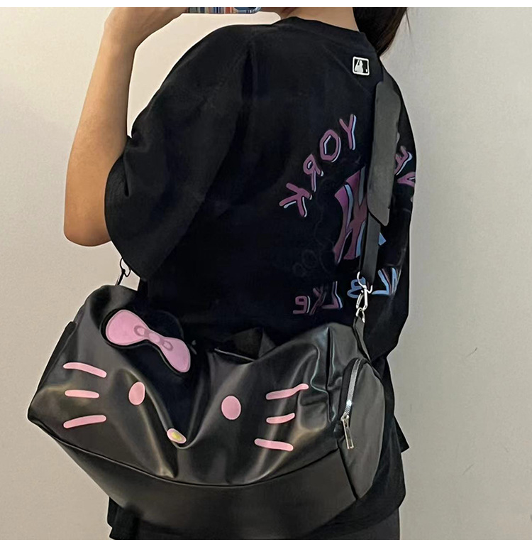 헬로 키티 만화 귀여운 큰 가방 어깨 검은 가죽 헬로 키티 휴대용 체육관 가방 크로스 바디 여행 가방 트렌디스토어 가기