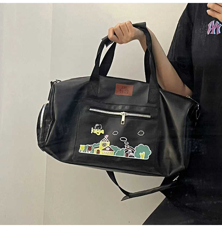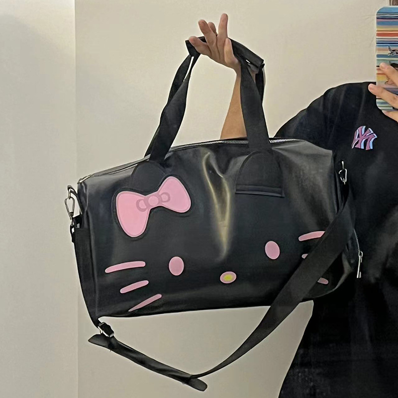 헬로 키티 만화 귀여운 큰 가방 어깨 검은 가죽 헬로 키티 휴대용 체육관 가방 크로스 바디 여행 가방 트렌디