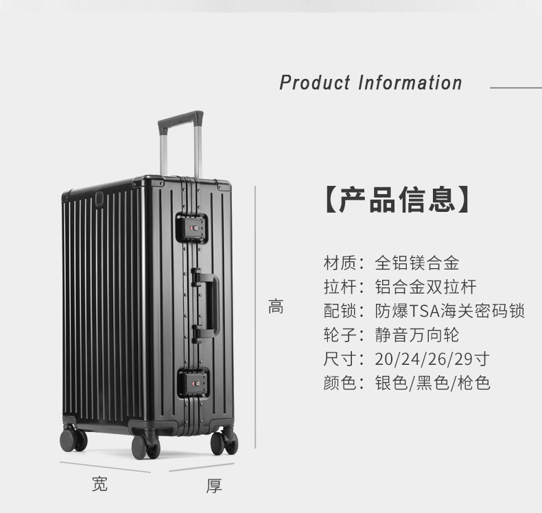 2024 새로운 모든 알루미늄-마그네슘 합금 트롤리 케이스 알루미늄 프레임 가방 남성 수하물 유니버설 휠 수하물 탑승 케이스