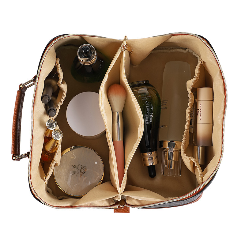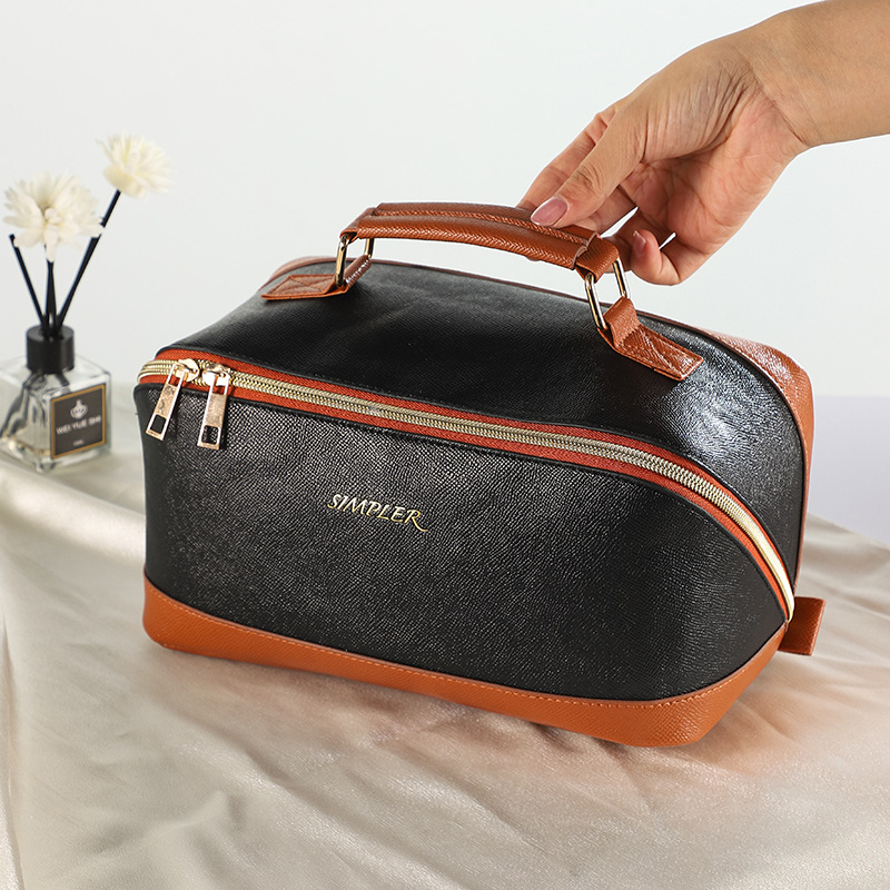 새로운 팜 프린트 PU 휴대용 화장품 가방 휴대용 여행 방수 보관 가방 대용량 고급 고급 화장실 가방