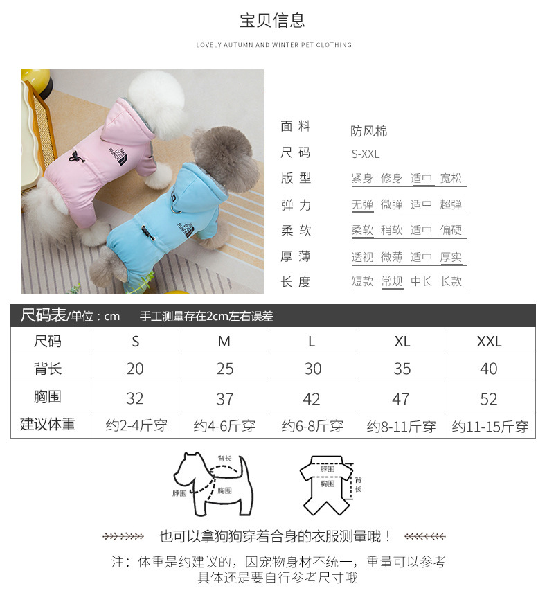 개 옷 가을과 겨울 옷 두꺼운 잘 생긴 4 개의 다리 견인 면 옷 작은 개 테디 애완 동물 6463스토어 가기