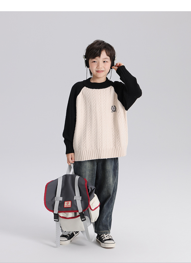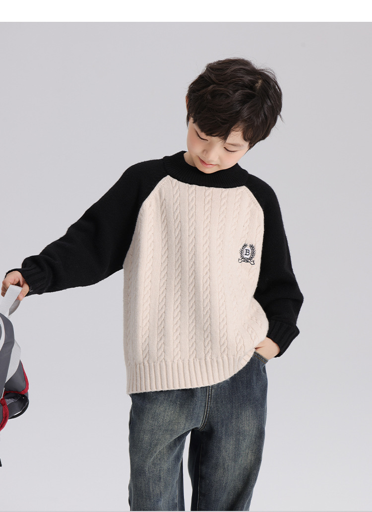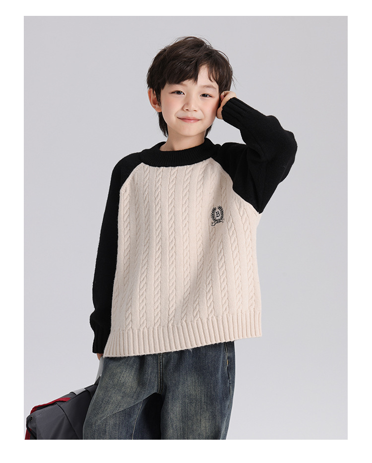 2024 가을과 겨울 새로운 어린이 니트 스웨터 따뜻한 소년의 스웨터 대학 스타일 대비 컬러 니트 스웨터