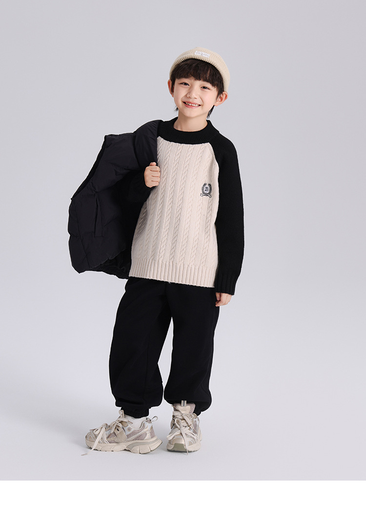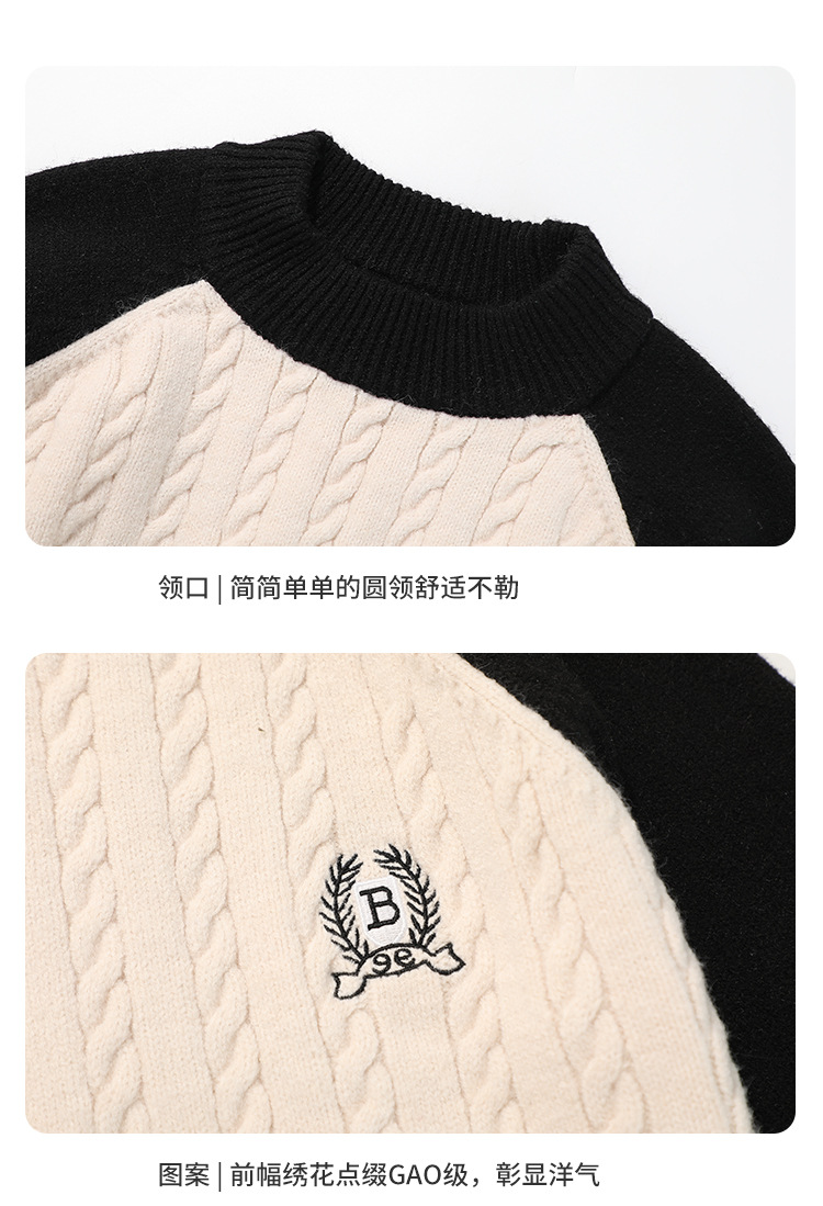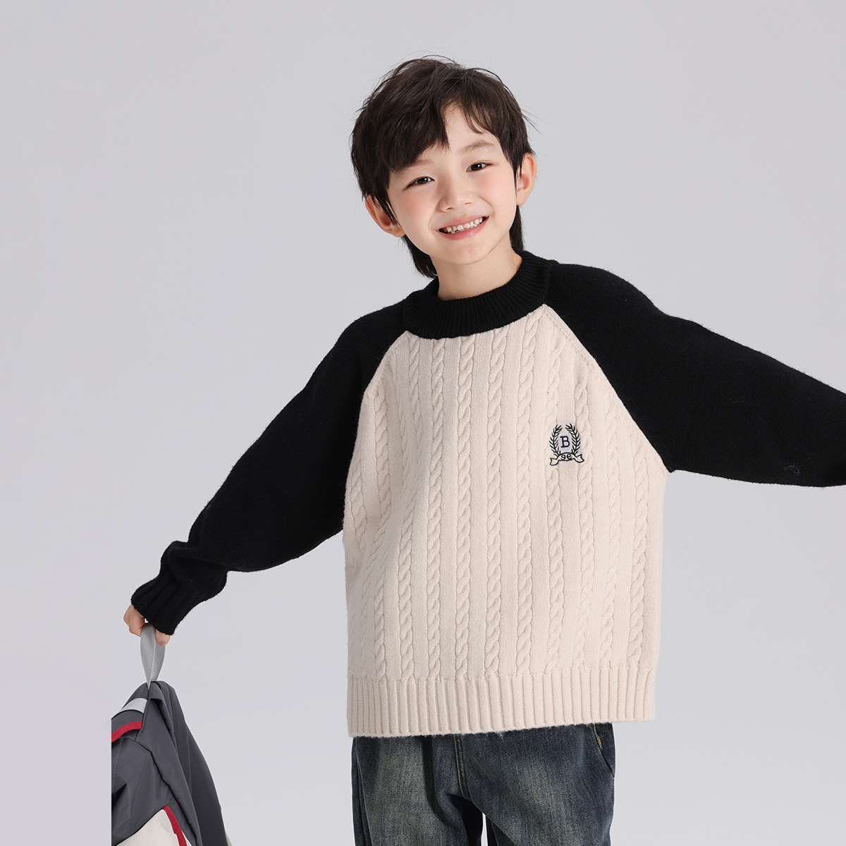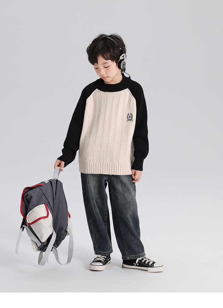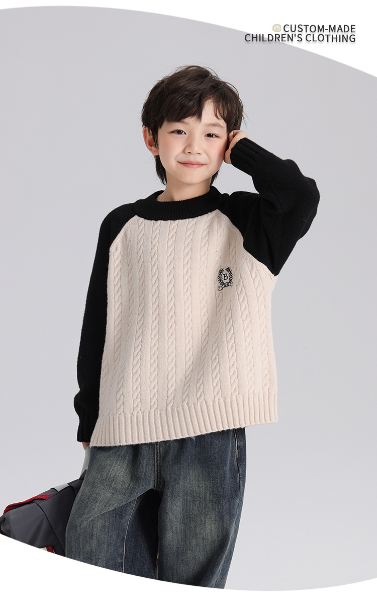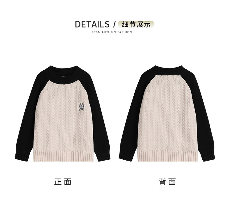 2024 가을과 겨울 새로운 어린이 니트 스웨터 따뜻한 소년의 스웨터 대학 스타일 대비 컬러 니트 스웨터스토어 가기