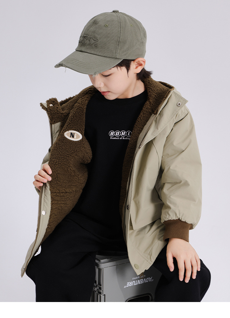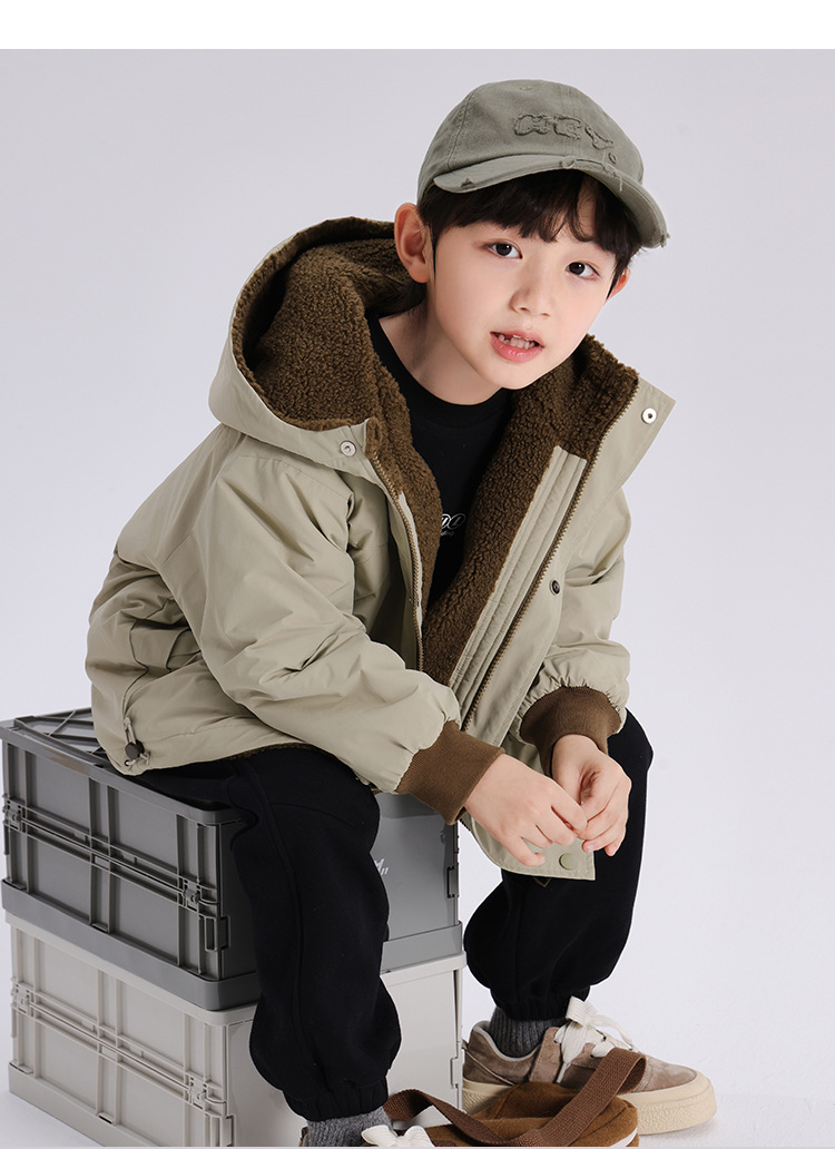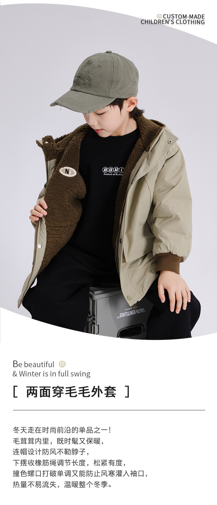 푸딩 Haru Boy의 겨울 재킷 양면 모피 탑 어린이 겨울 두꺼운 따뜻한 자켓 착용