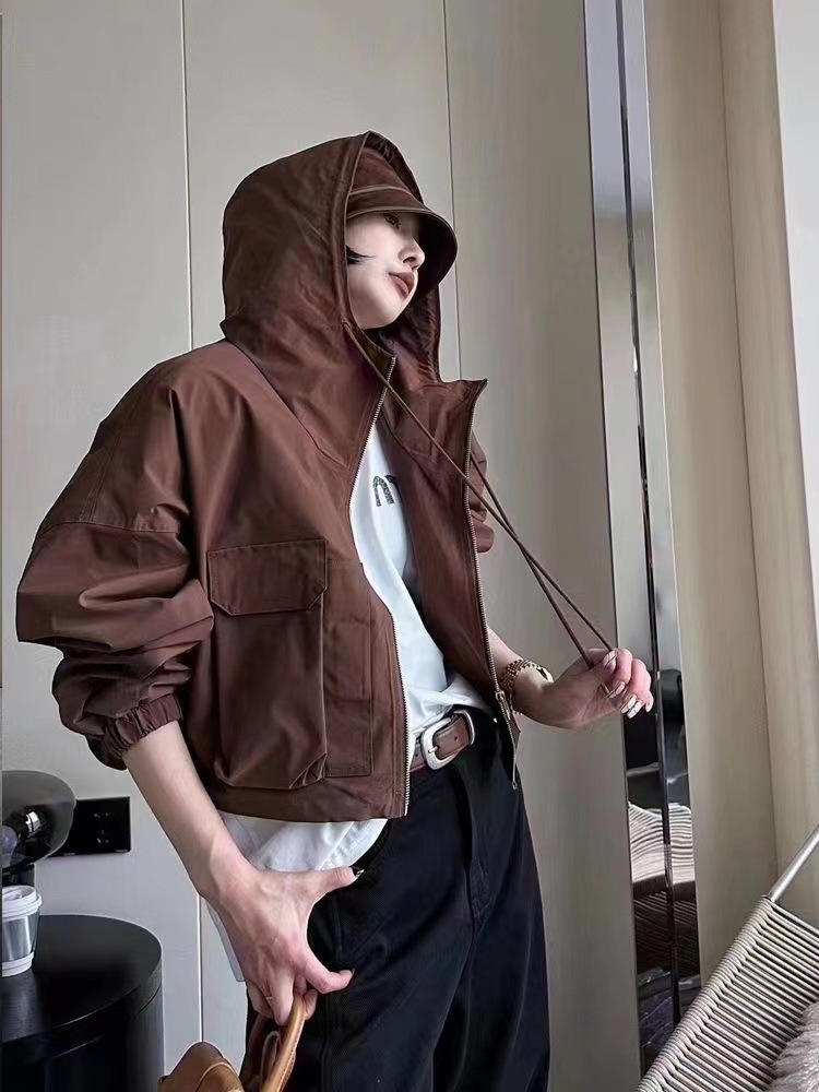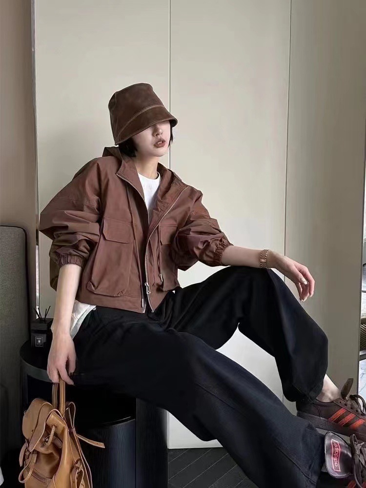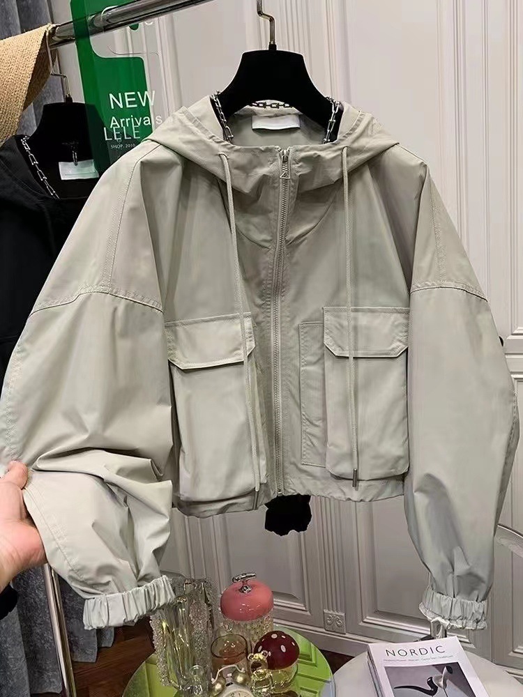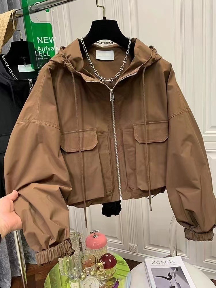유럽 가을 틈새 느슨한 하라주쿠 BF 재킷 탑 후드 포켓 카고 재킷 여성의 짧은 트렌디 스몰스토어 가기