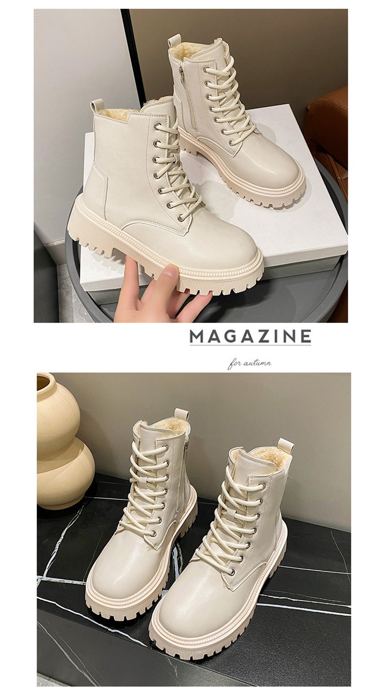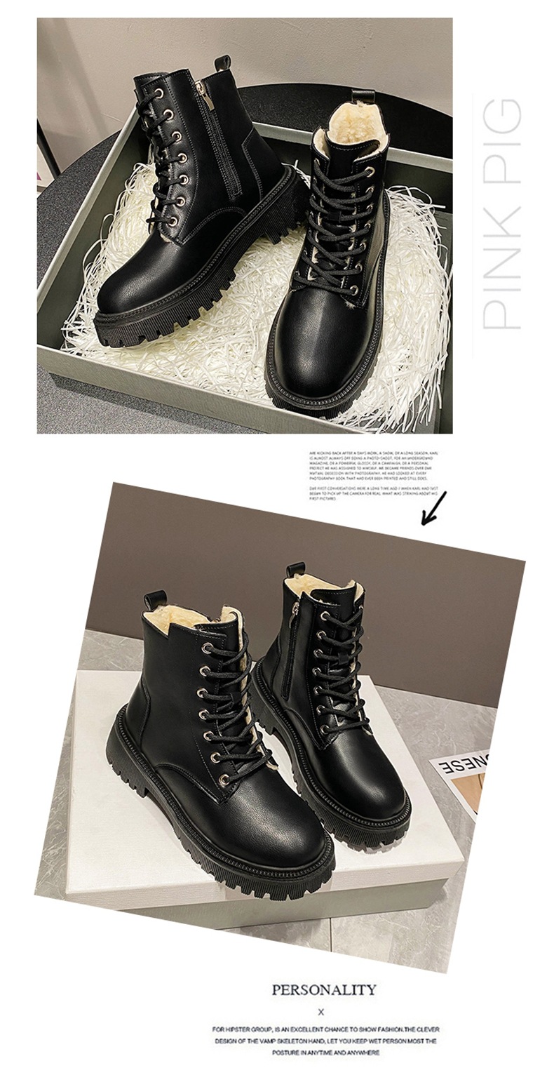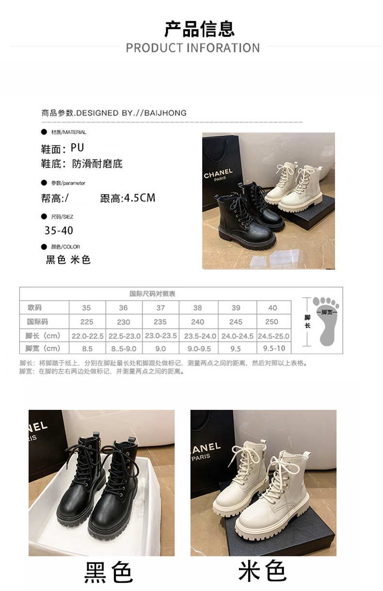 마틴 부츠 여성 신발 2024 년 봄과 가을 새로운 하이 탑 캐주얼 두꺼운 밑창 짧은 부츠 루트 레이스 업 기모 오토바이 부츠 여성스토어 가기