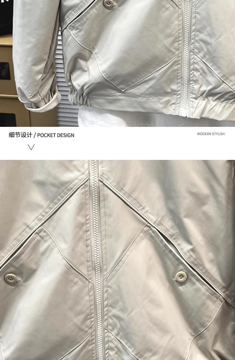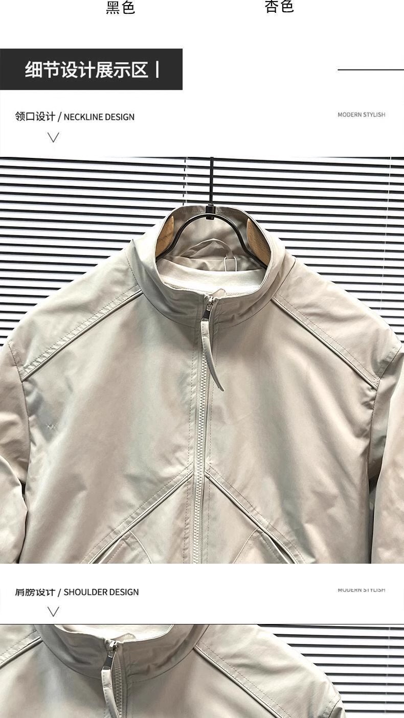 2024 가을 일본식 단색 스탠드 칼라 재킷 남성 패션 캐주얼 심플 방수 짧은 재킷스토어 가기