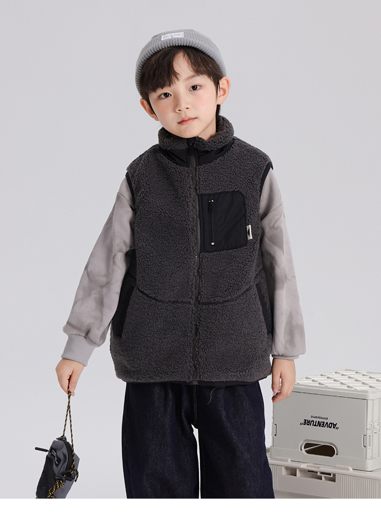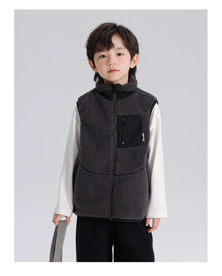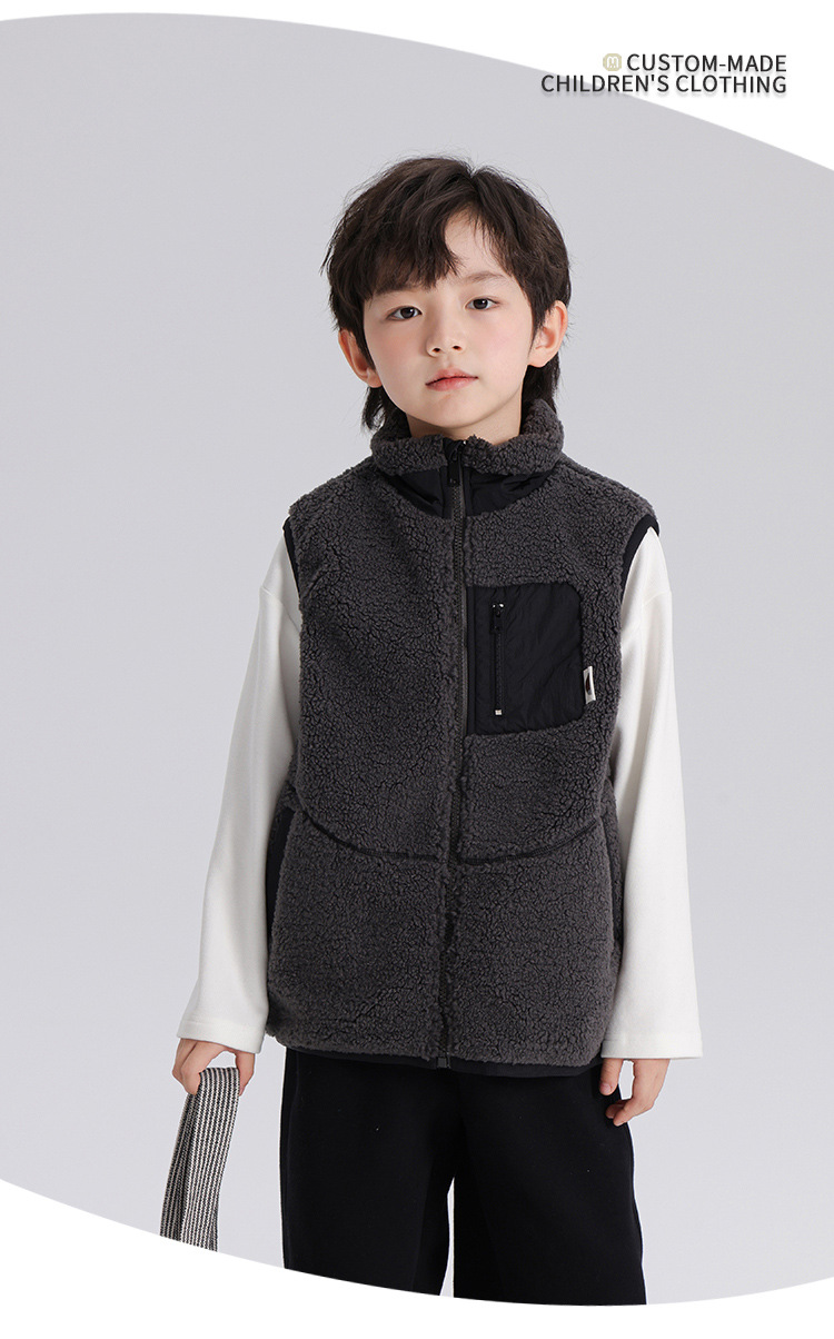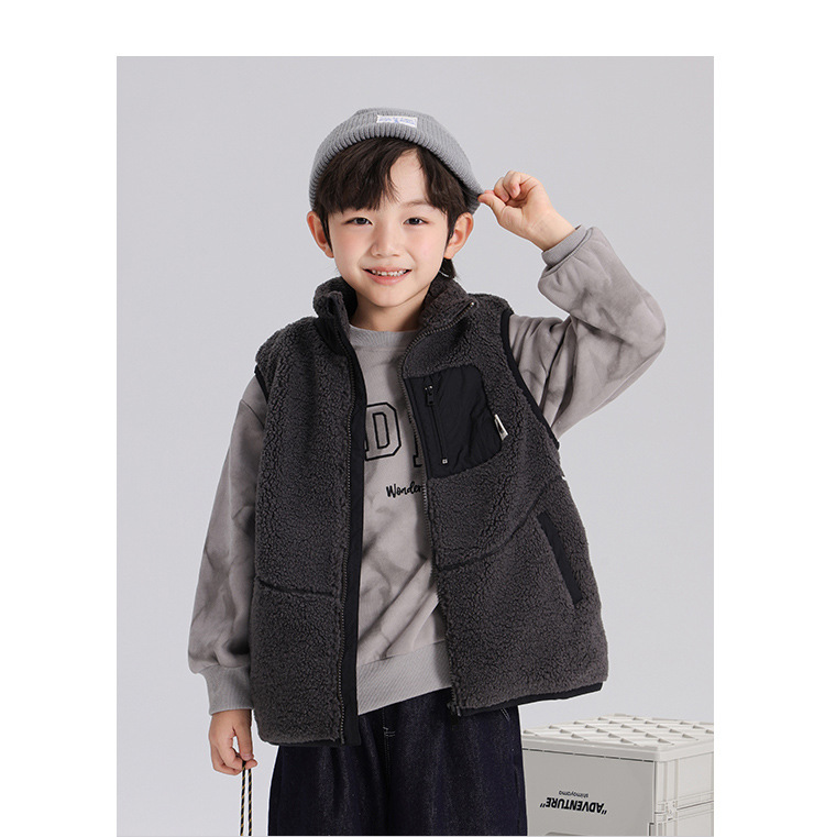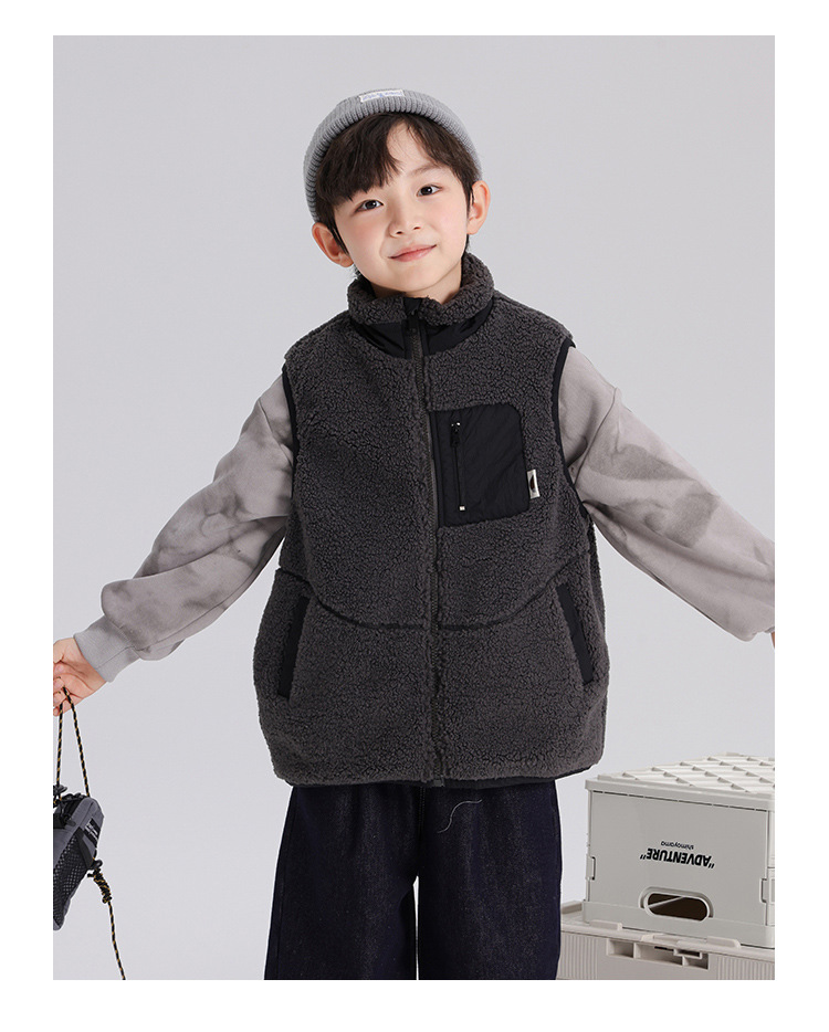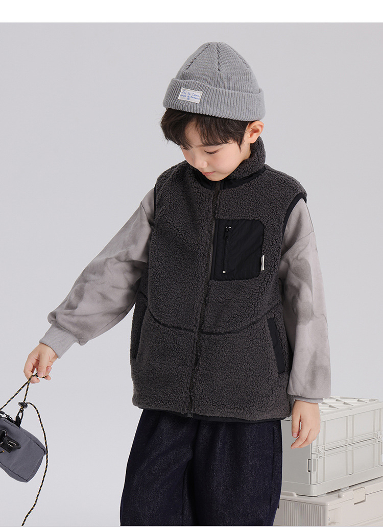 가을 2024 년 새로운 어린이 칼라 스티칭 조끼 유행 간단한 소년 올리 벨벳 조끼 두껍게