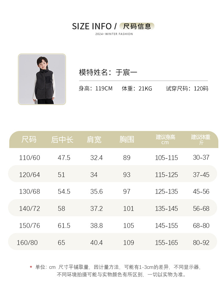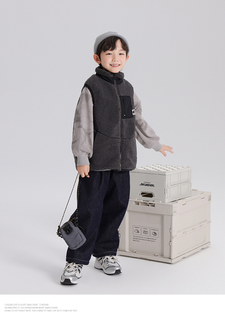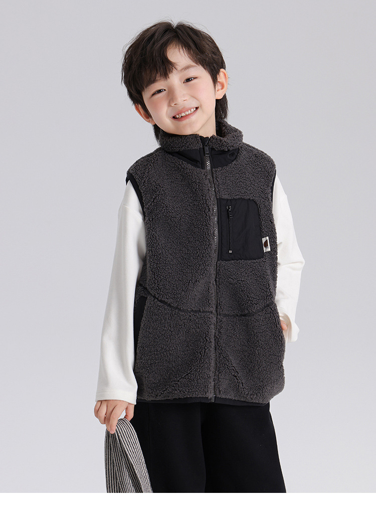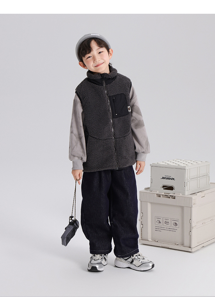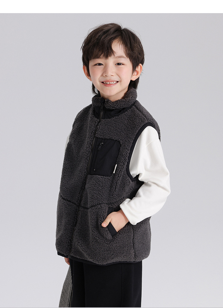 가을 2024 년 새로운 어린이 칼라 스티칭 조끼 유행 간단한 소년 올리 벨벳 조끼 두껍게
