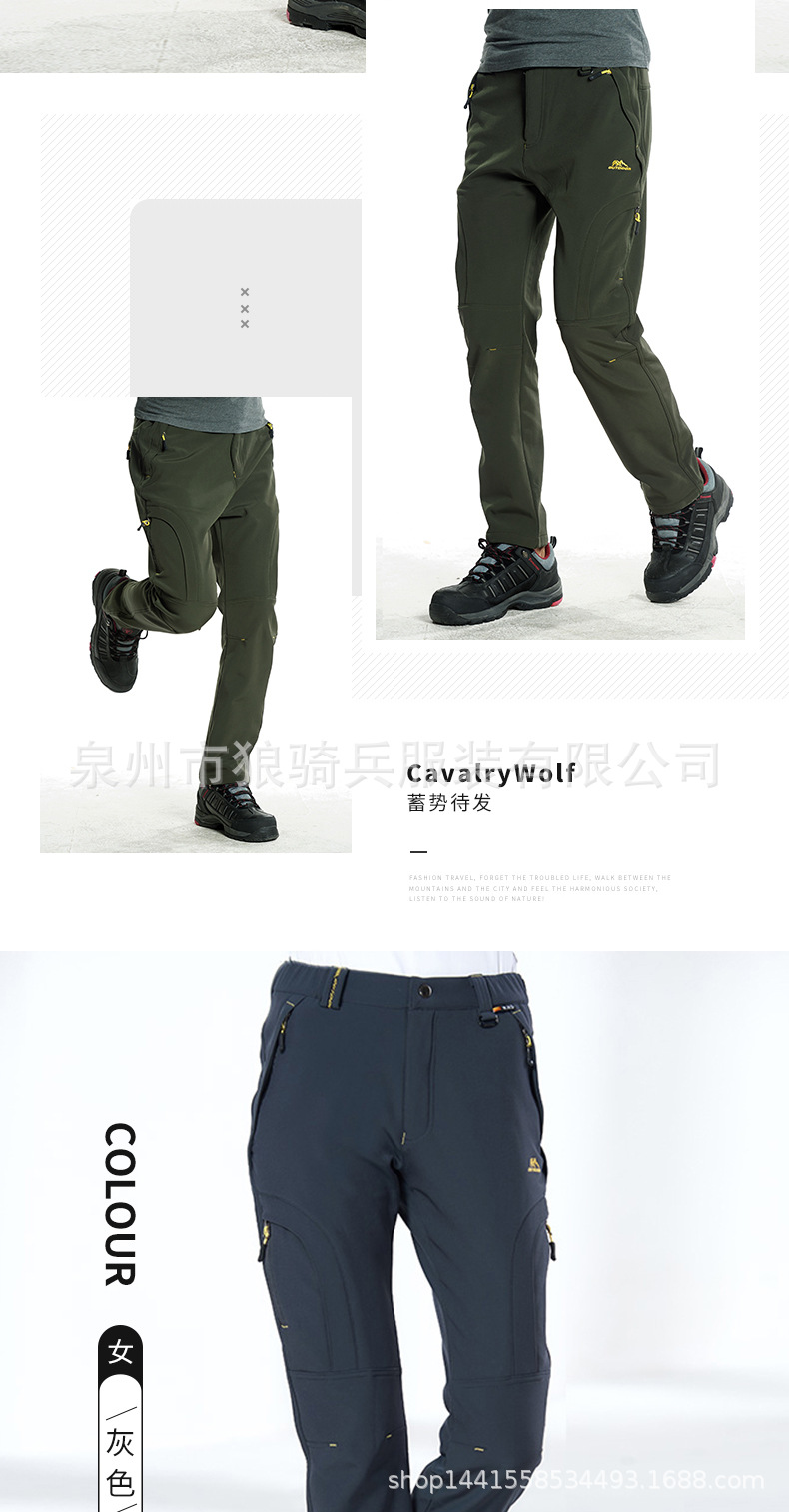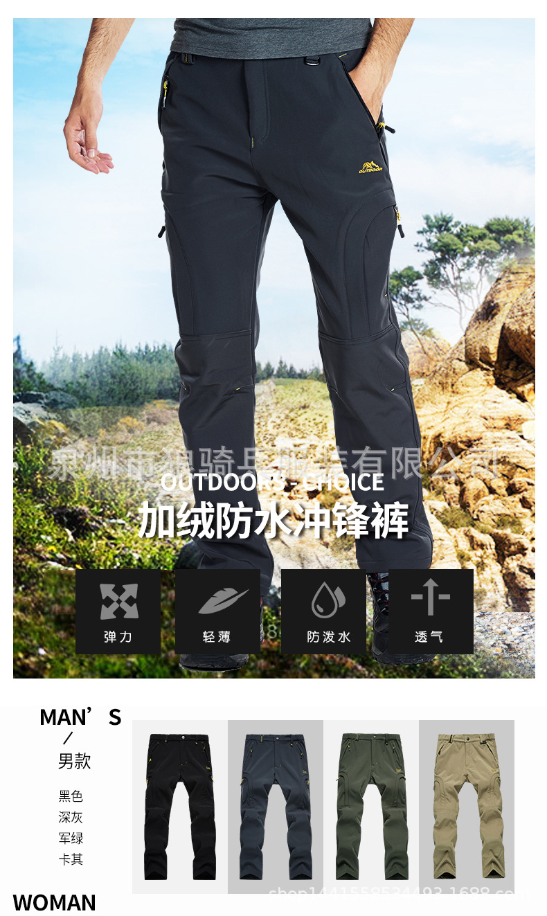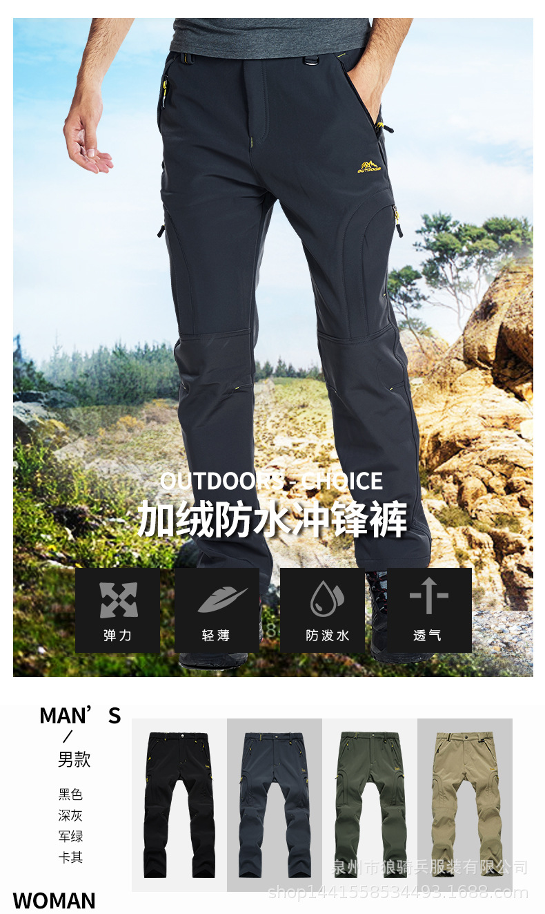 가을과 겨울 야외 폭행 바지 남성용 방풍 방수 플러스 사이즈 뚱뚱한 따뜻한 양털 패딩 하이킹 바지 여성용 국경 도매스토어 가기