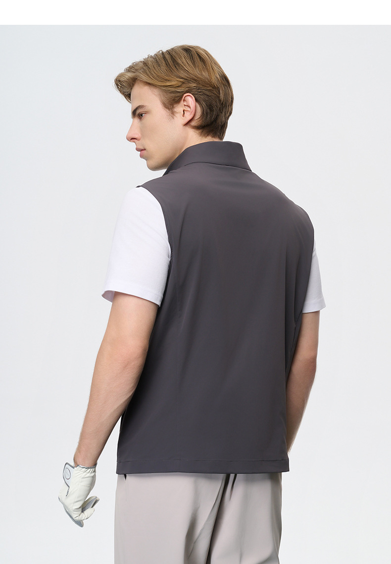 가을 겨울 남성용 고급 맞춤형 골프 의류 새로운 단색 조끼 스탠드 칼라 지퍼 통근 캐주얼 조끼