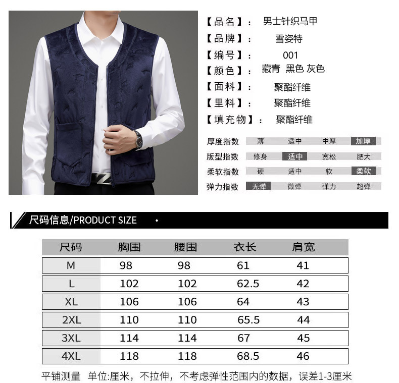 Xueyi 특별 기모 두꺼운 면화 조끼 플러스 사이즈 할아버지 조끼를 입고 남성 중년 및 노인 가을 및 겨울