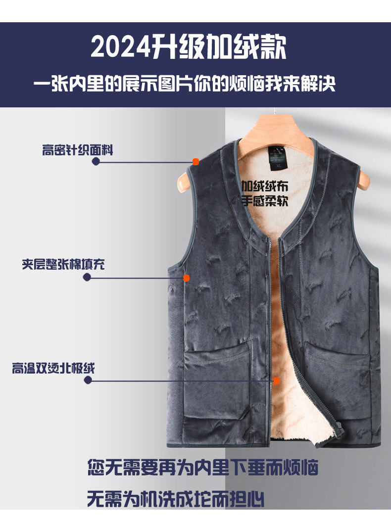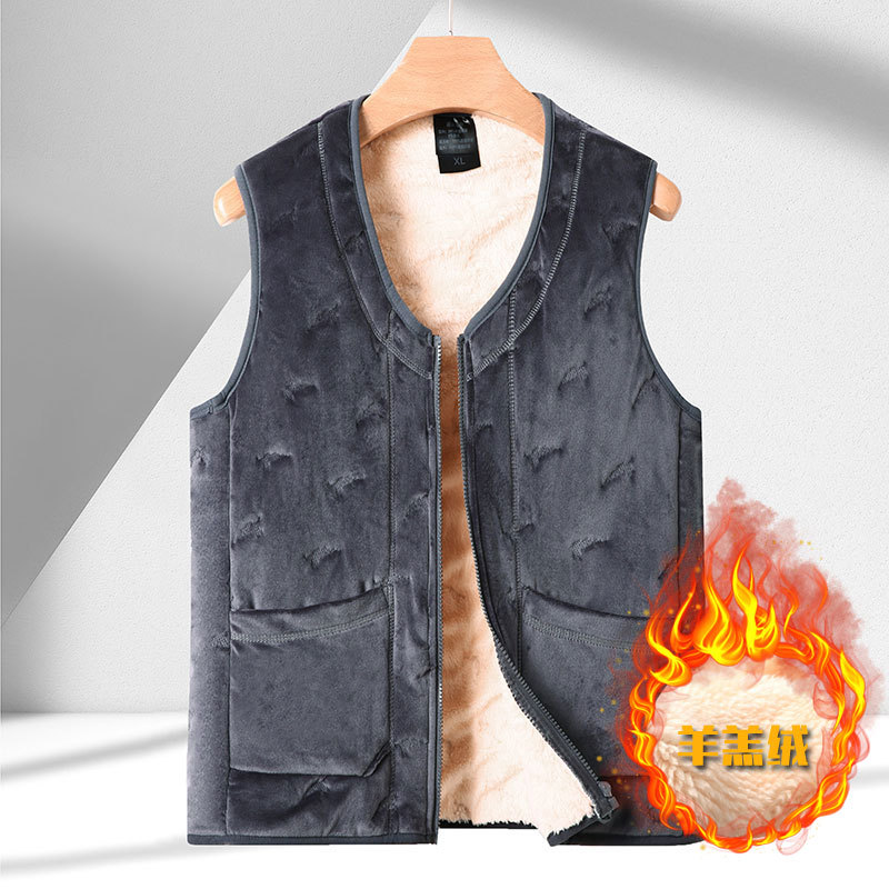 Xueyi 특별 기모 두꺼운 면화 조끼 플러스 사이즈 할아버지 조끼를 입고 남성 중년 및 노인 가을 및 겨울스토어 가기