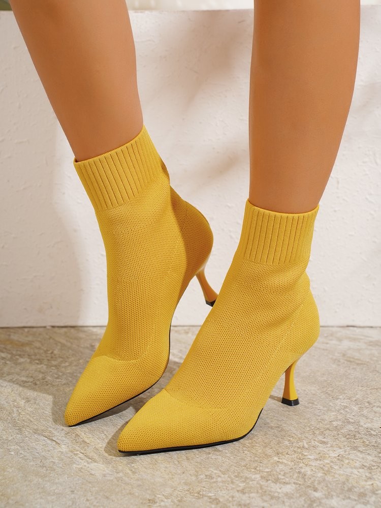 대외 무역 마틴 부츠 여성 2024 가을 겨울 새로운 한국 패션 포인팅 하이힐 니트 스트레치 얇은 부츠 여성