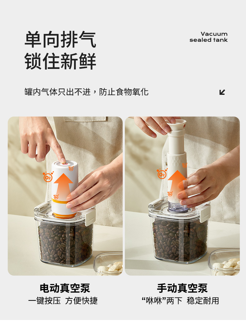 抽真空密封罐保鲜盒电动抽真抽气密封罐厨房冰箱收纳盒食品储存食