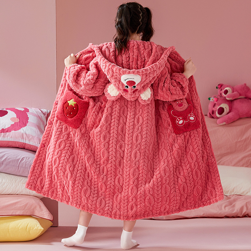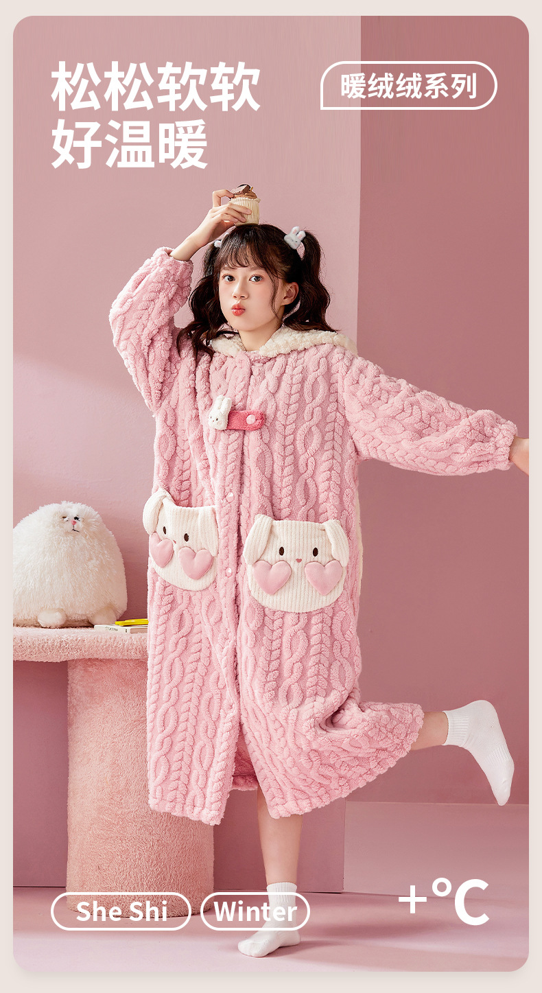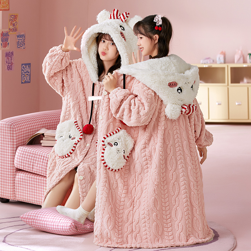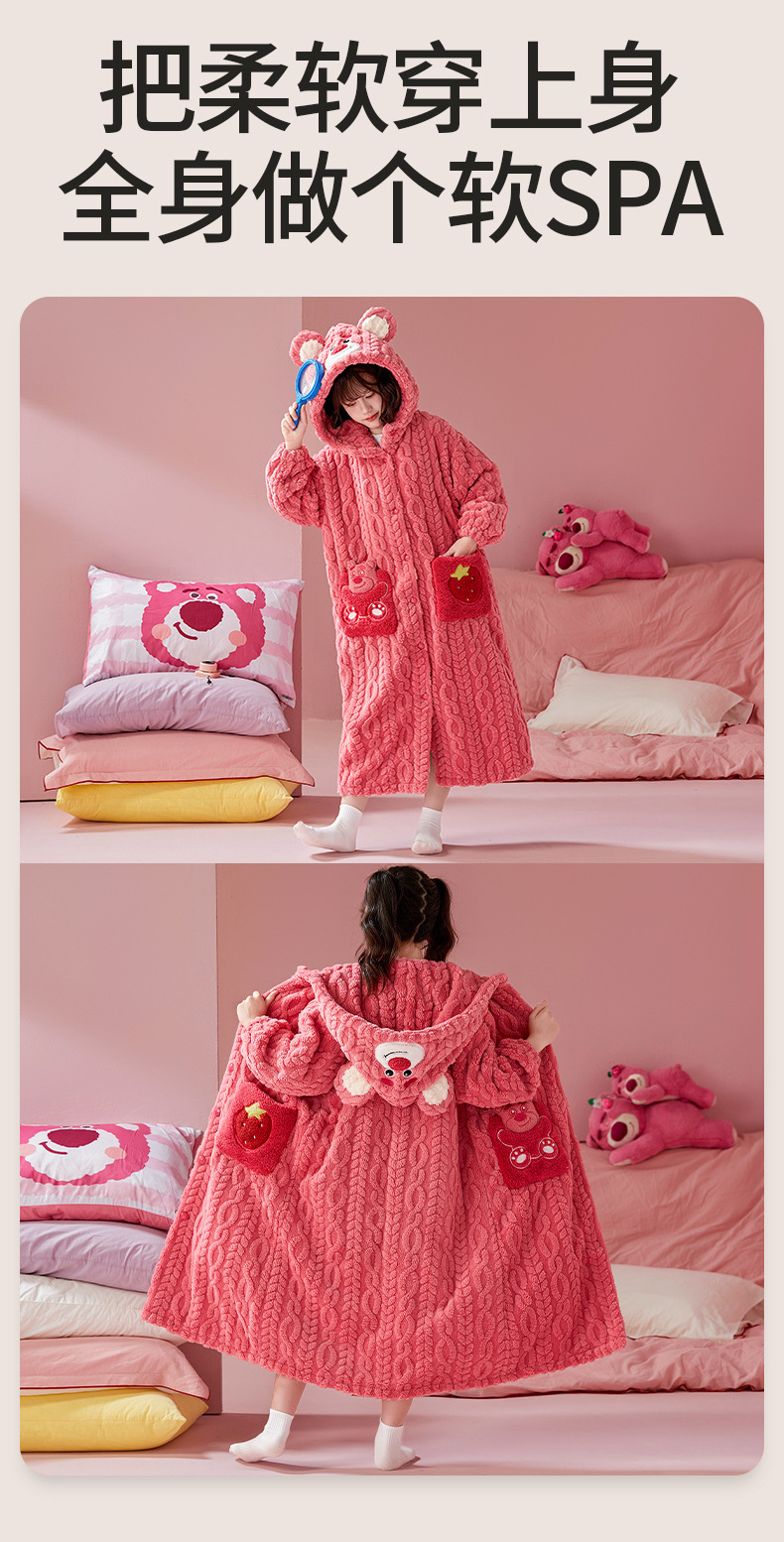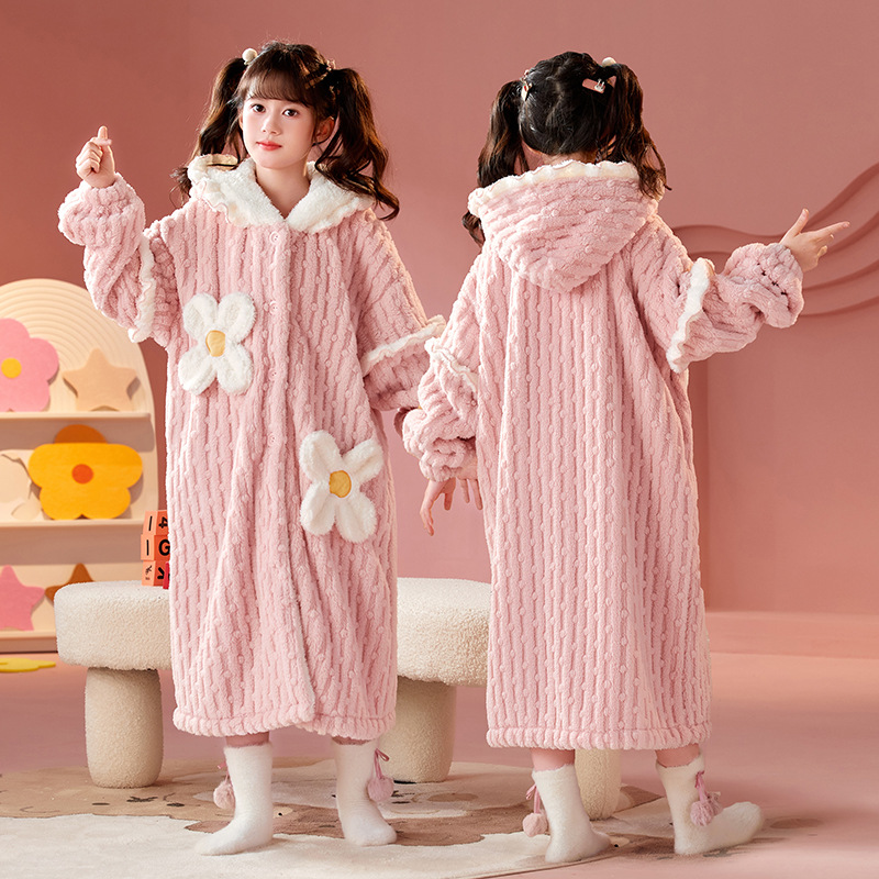 여자 산호 양털 잠옷 겨울 긴 여아 잠옷 엄마와 딸 집 옷을위한 가을과 겨울 플란넬 목욕 가운스토어 가기