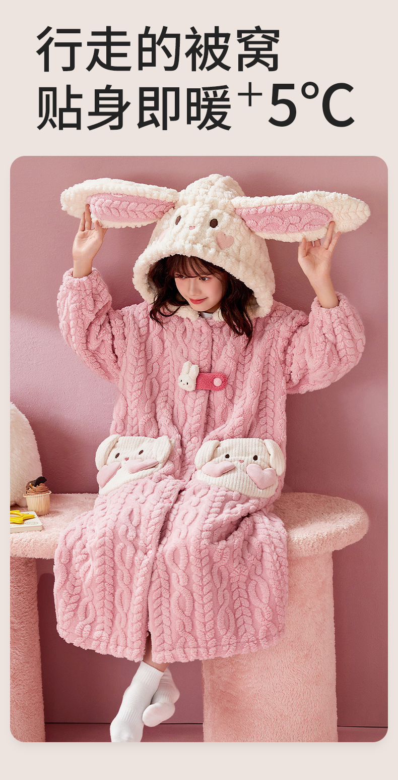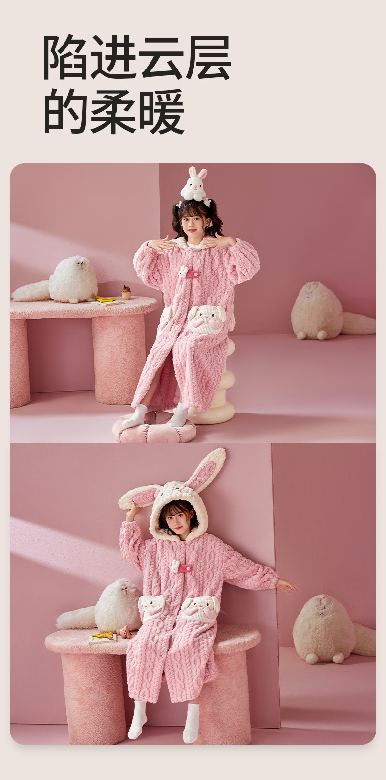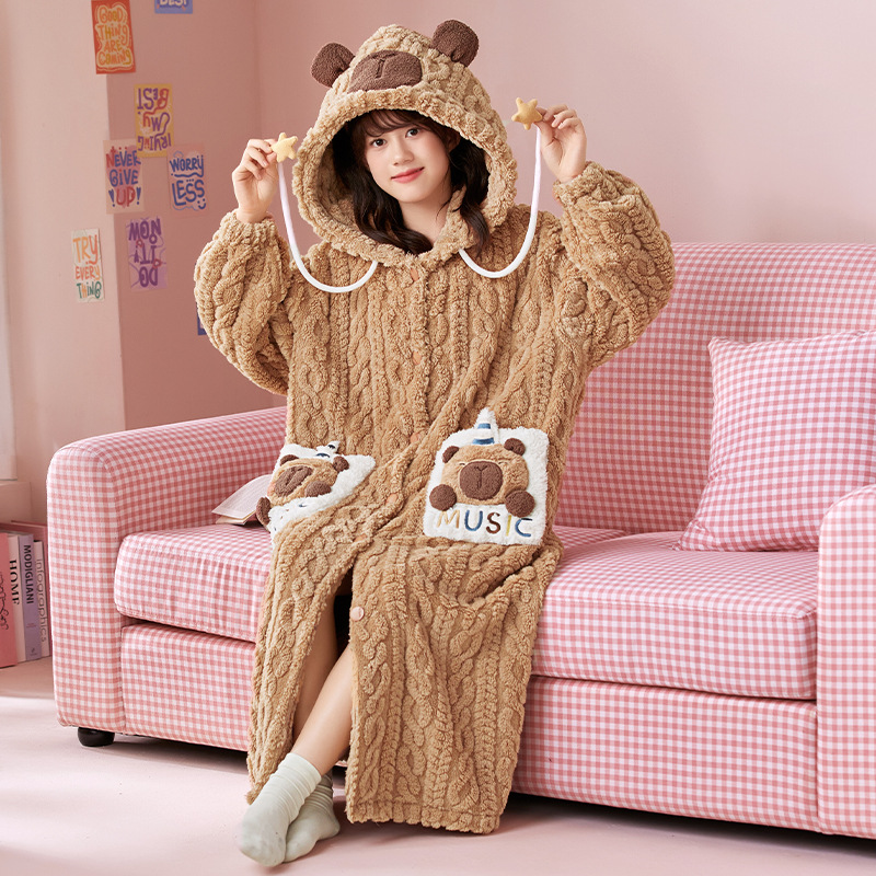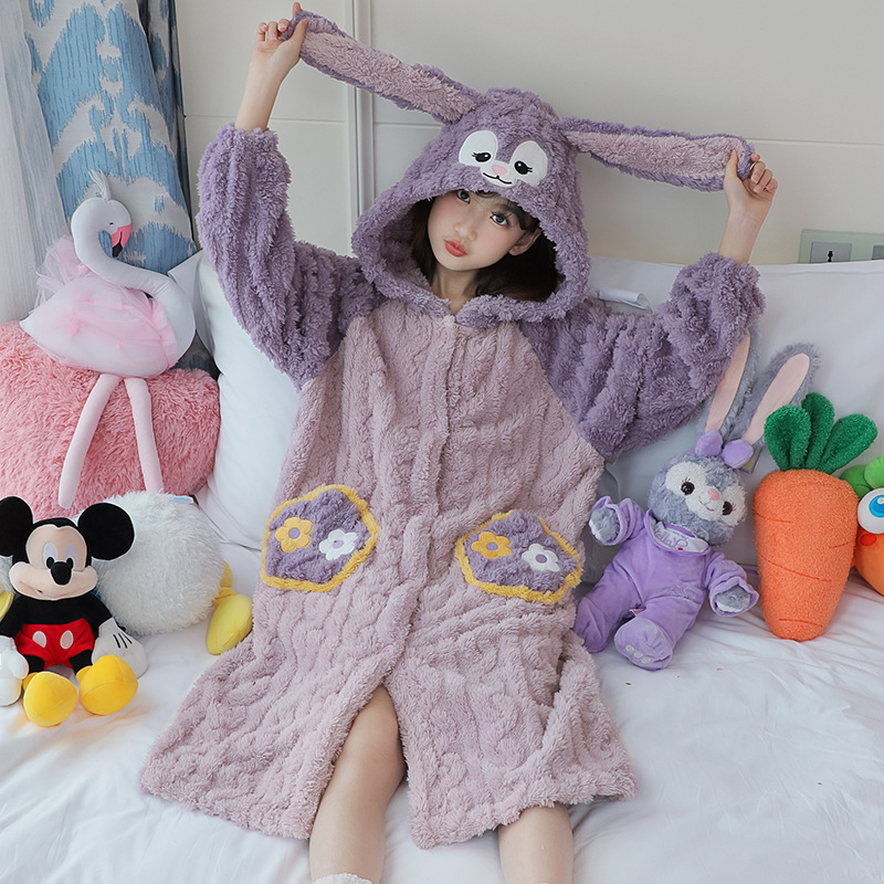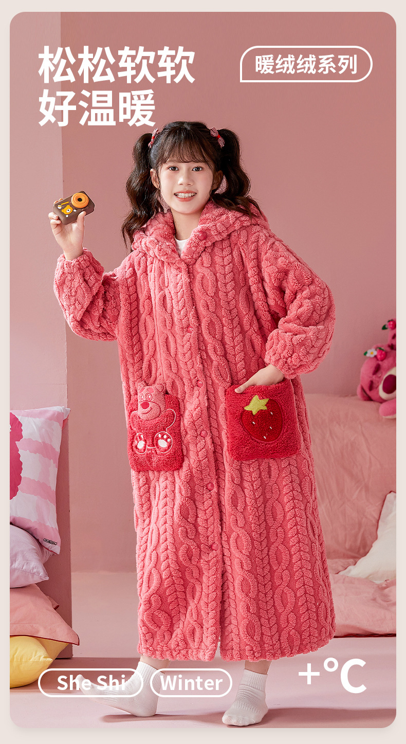 여자 산호 양털 잠옷 겨울 긴 여아 잠옷 엄마와 딸 집 옷을위한 가을과 겨울 플란넬 목욕 가운스토어 가기