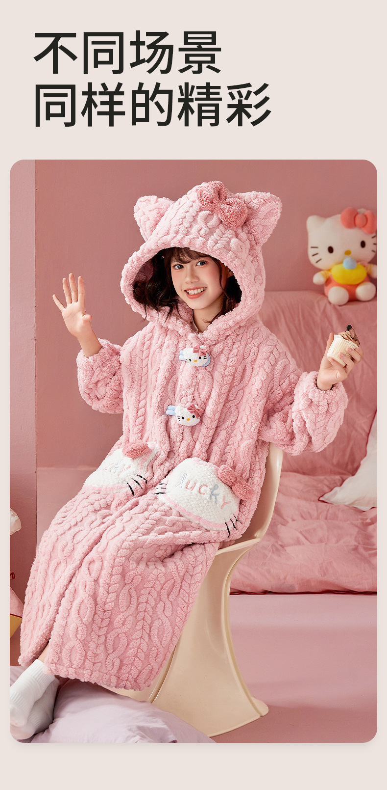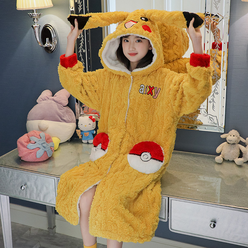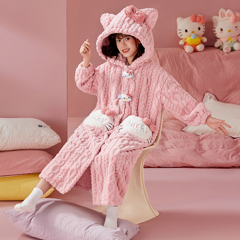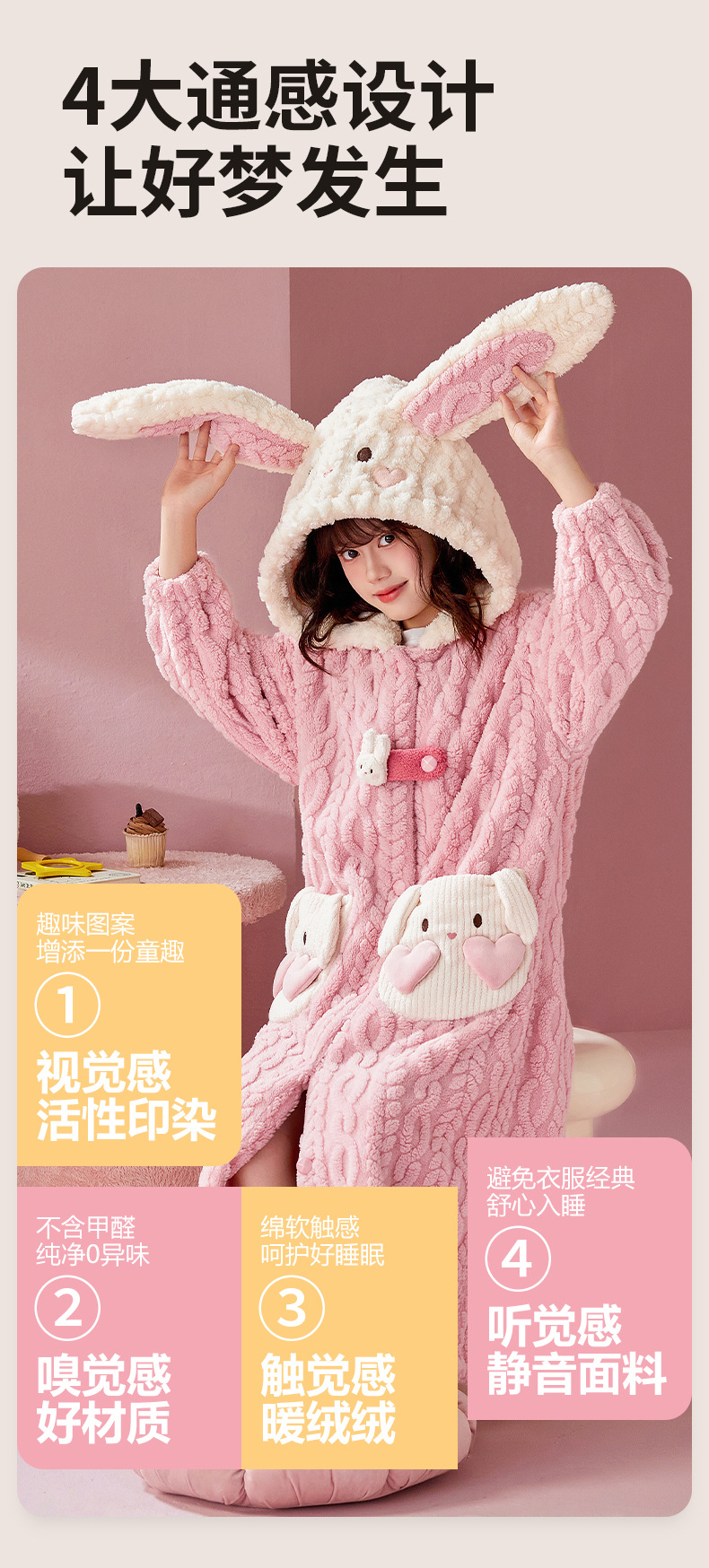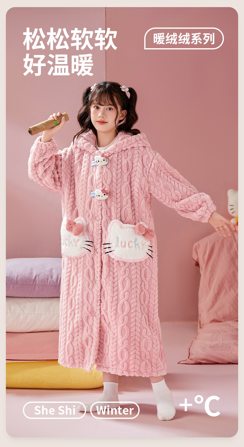 여자 산호 양털 잠옷 겨울 긴 여아 잠옷 엄마와 딸 집 옷을위한 가을과 겨울 플란넬 목욕 가운스토어 가기