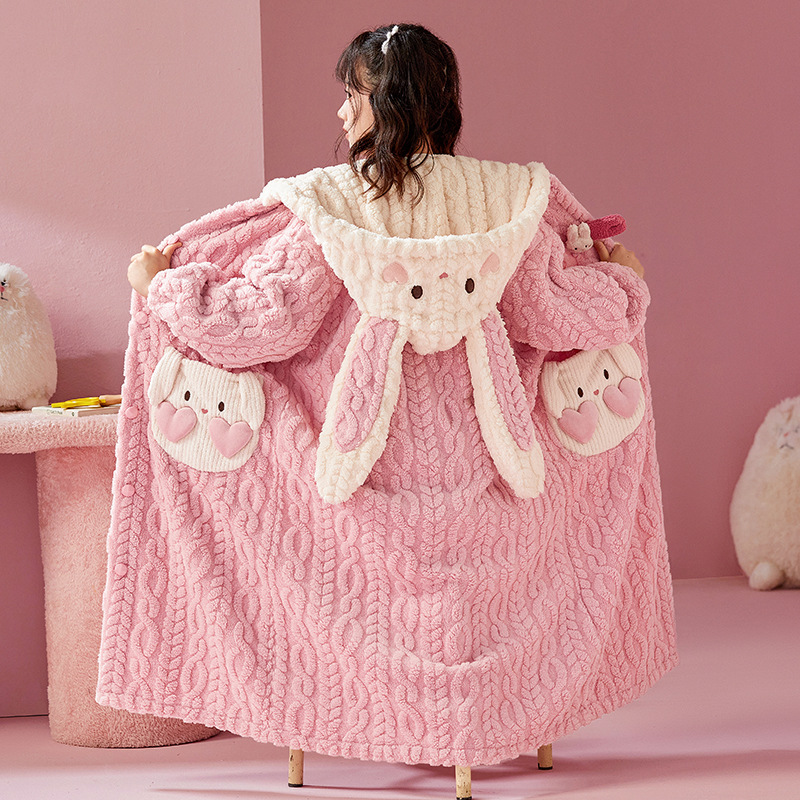 여자 산호 양털 잠옷 겨울 긴 여아 잠옷 엄마와 딸 집 옷을위한 가을과 겨울 플란넬 목욕 가운