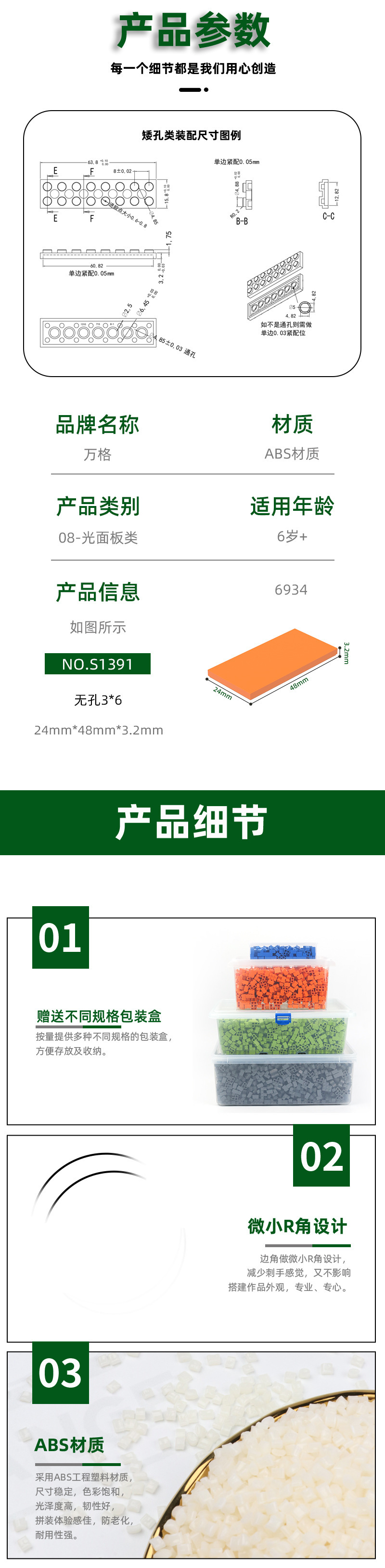 완게 교육용 DIY 소형 블록 6934 조립 부품 무구멍 3*6 과학 교육용 장난감 블록 부품