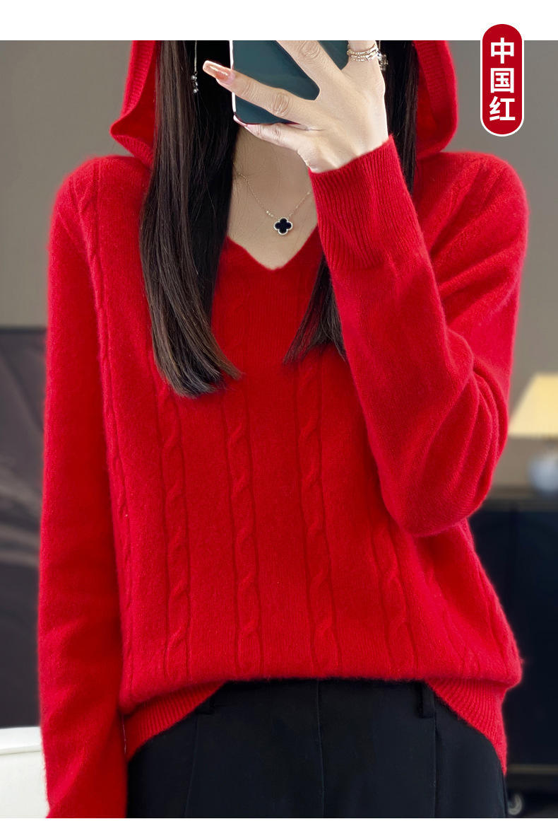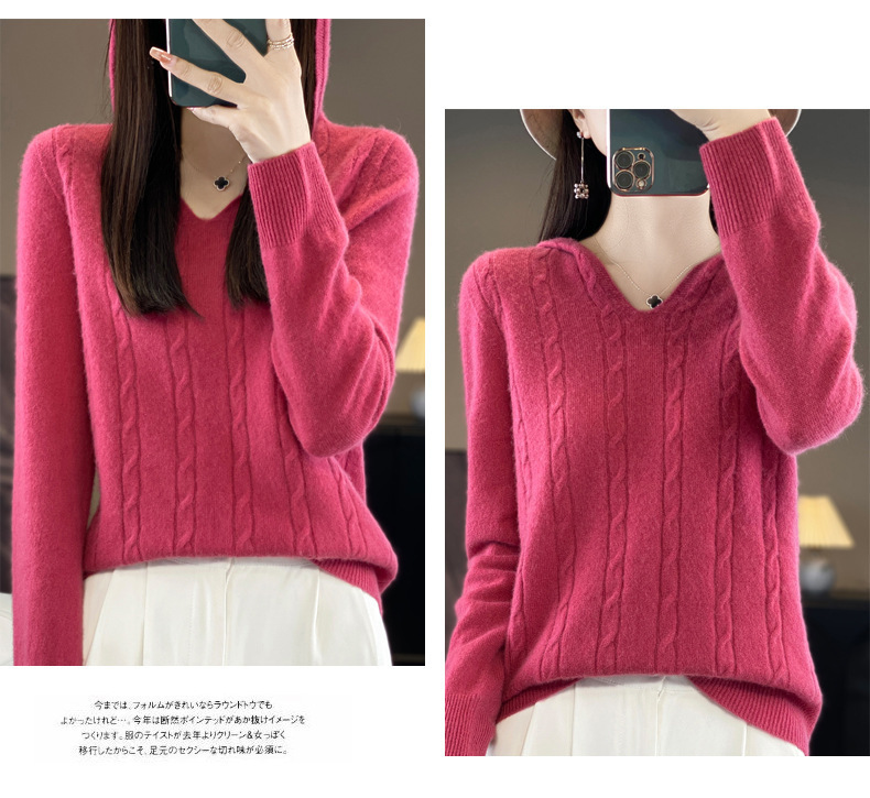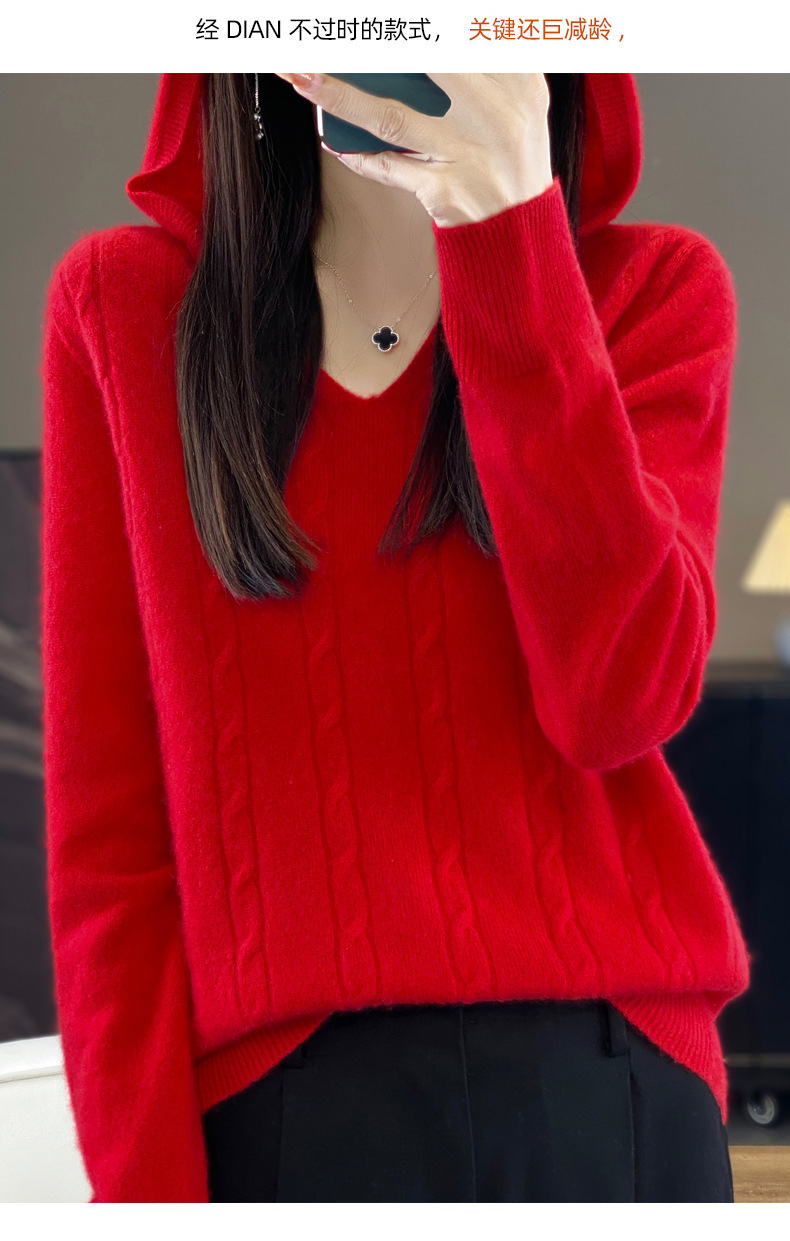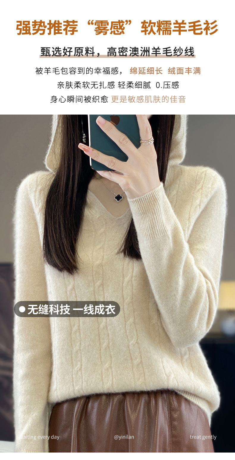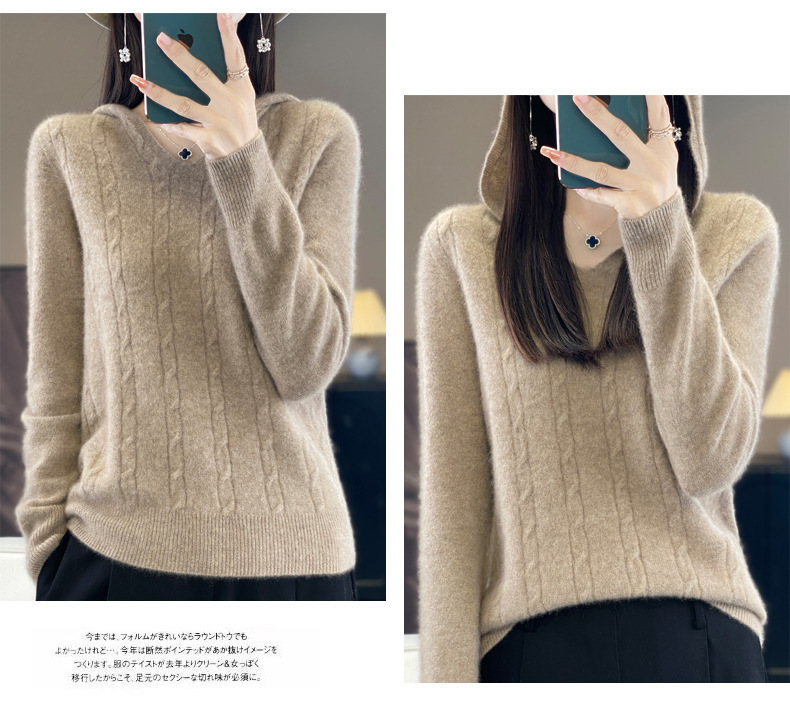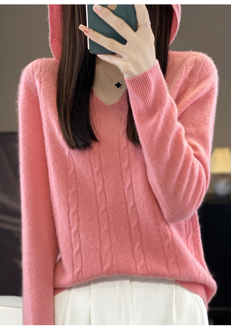 V-Neck Twisted Hoodie 여성용 순수 양모 스웨터 가을과 겨울 풀오버 새로운 느슨한 게으른 부드러운 왁스 스웨터 탑 틈새스토어 가기
