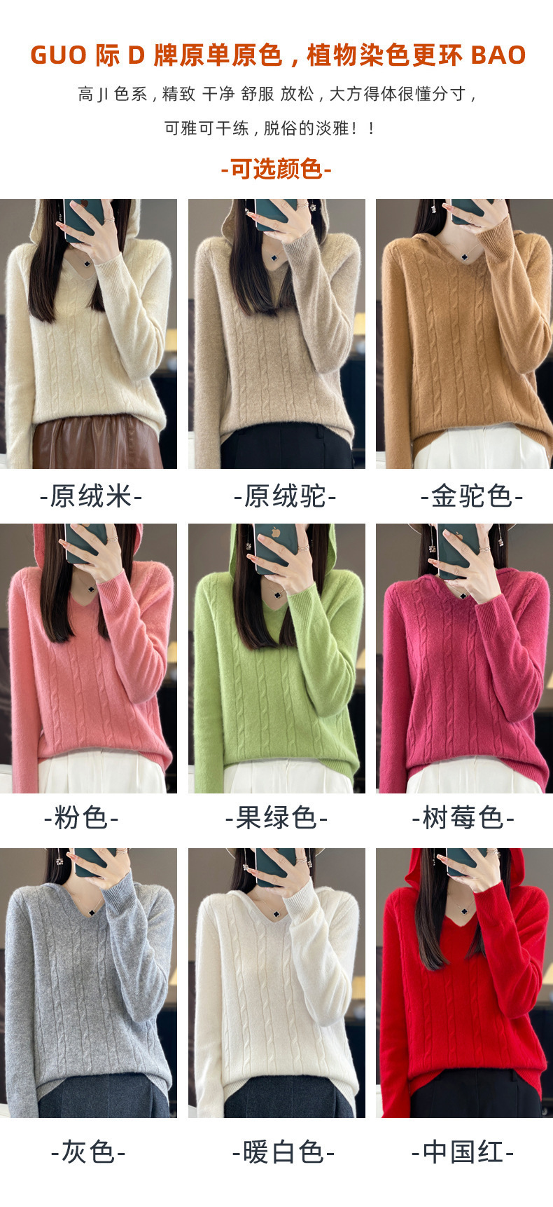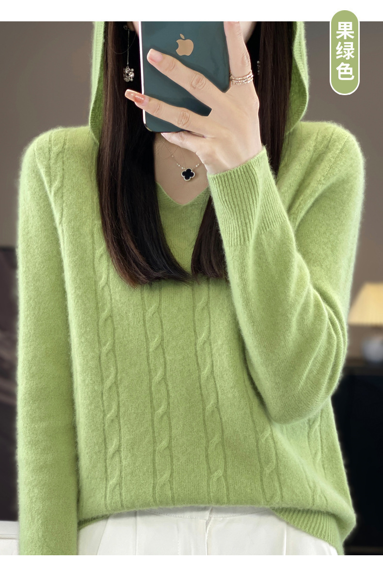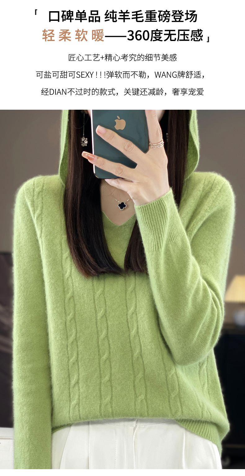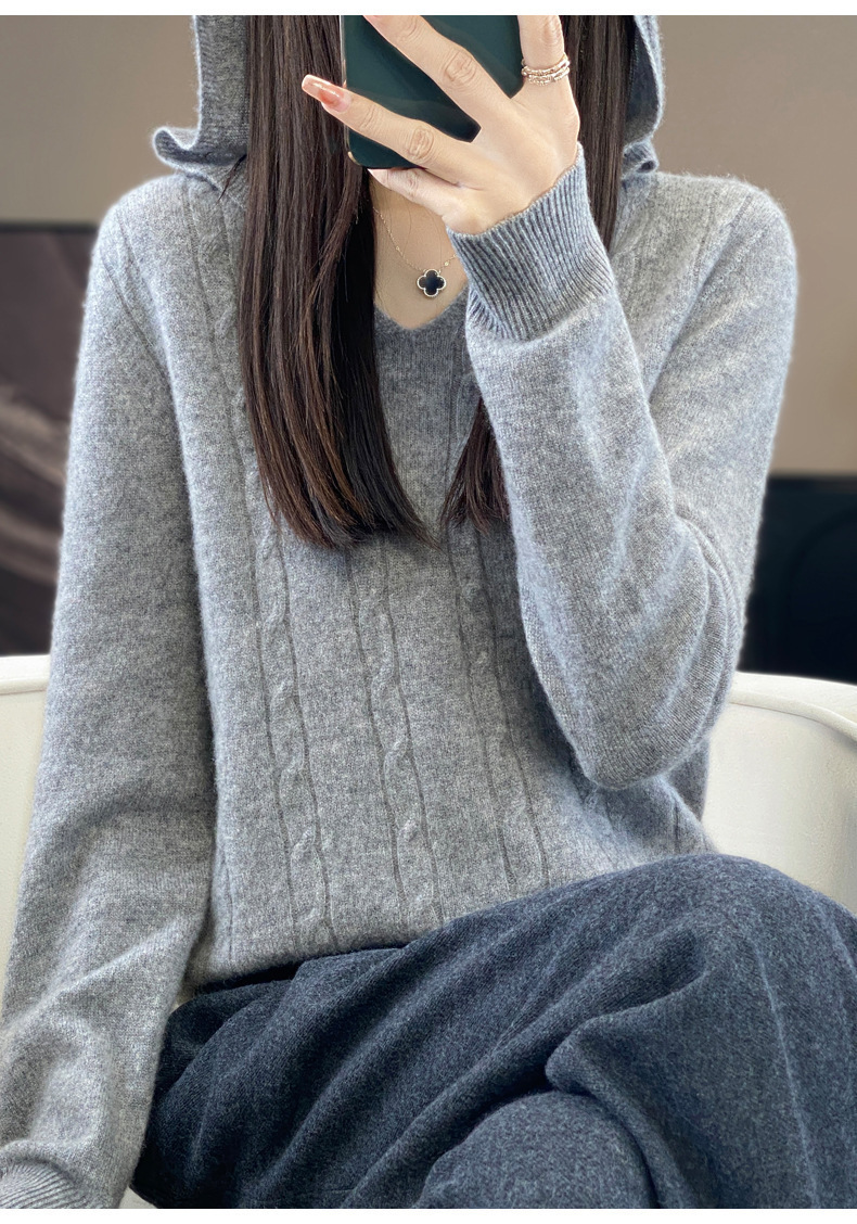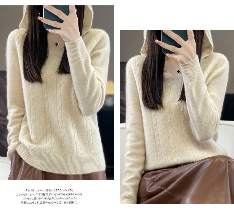 V-Neck Twisted Hoodie 여성용 순수 양모 스웨터 가을과 겨울 풀오버 새로운 느슨한 게으른 부드러운 왁스 스웨터 탑 틈새스토어 가기
