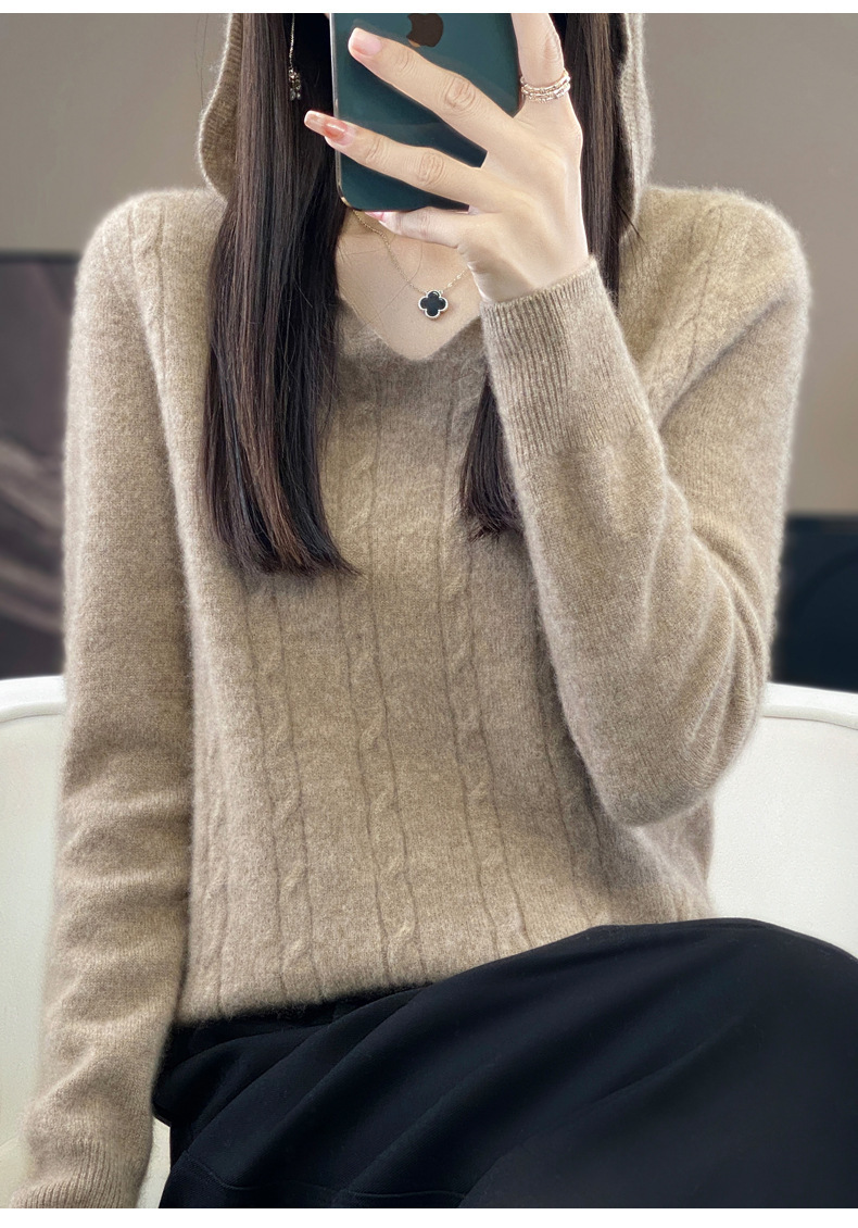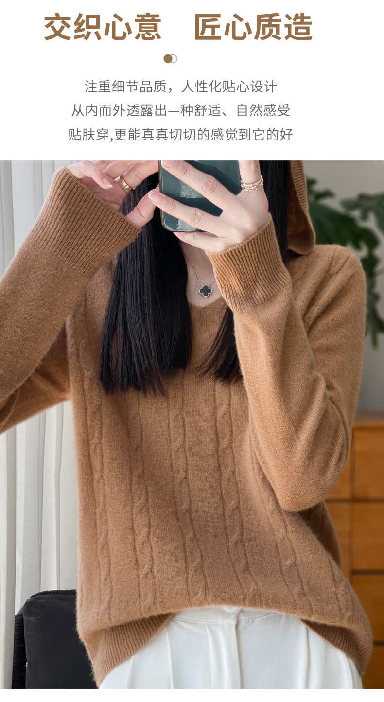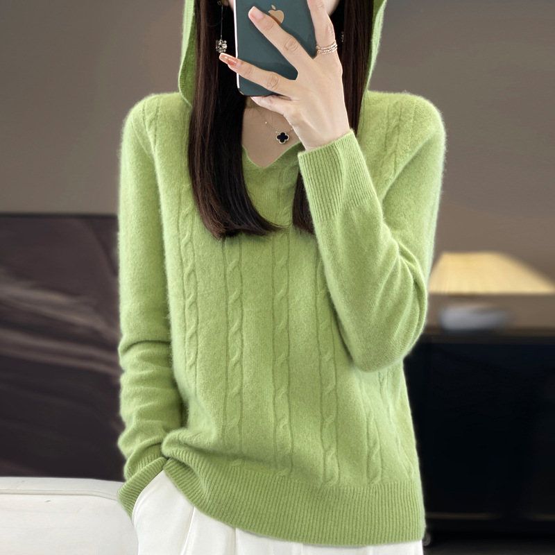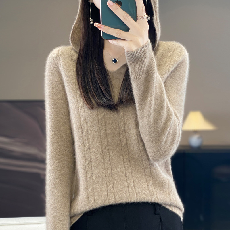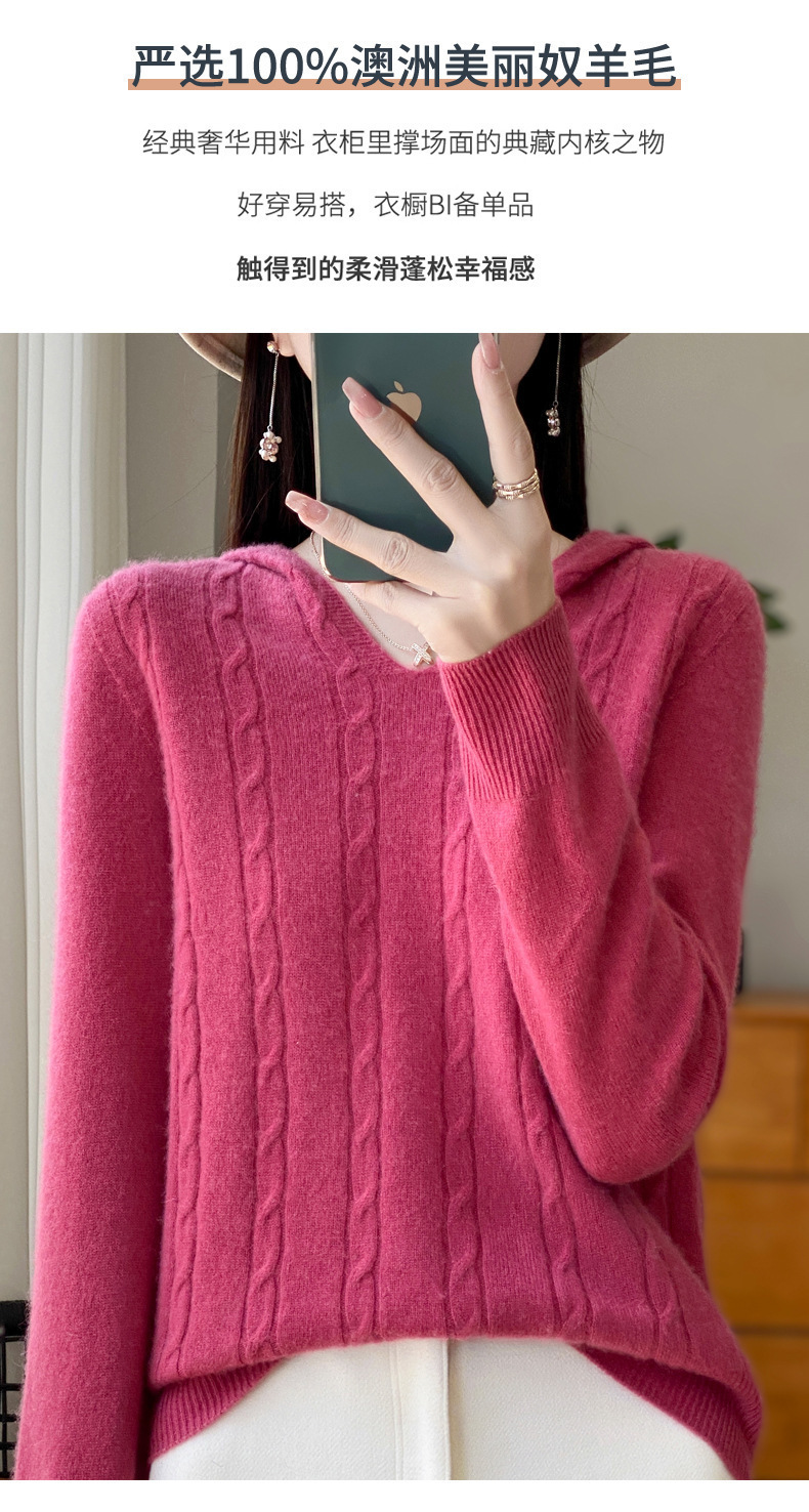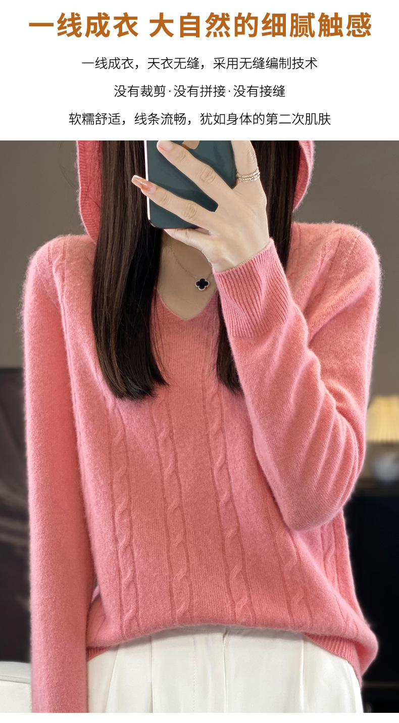 V-Neck Twisted Hoodie 여성용 순수 양모 스웨터 가을과 겨울 풀오버 새로운 느슨한 게으른 부드러운 왁스 스웨터 탑 틈새스토어 가기