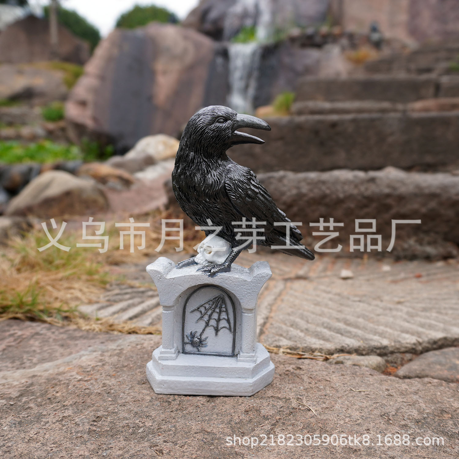 데스크탑 진자 안뜰 장식 정원 분위기 레이아웃에 적합한 국경 새 묘비 까마귀 수지 공예스토어 가기