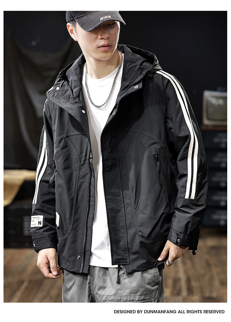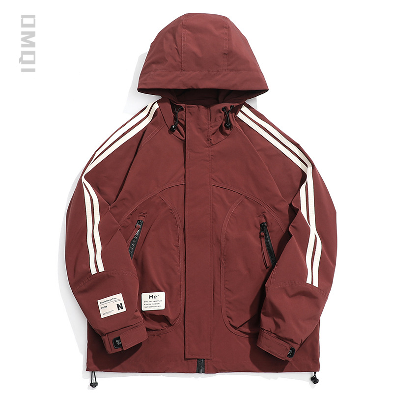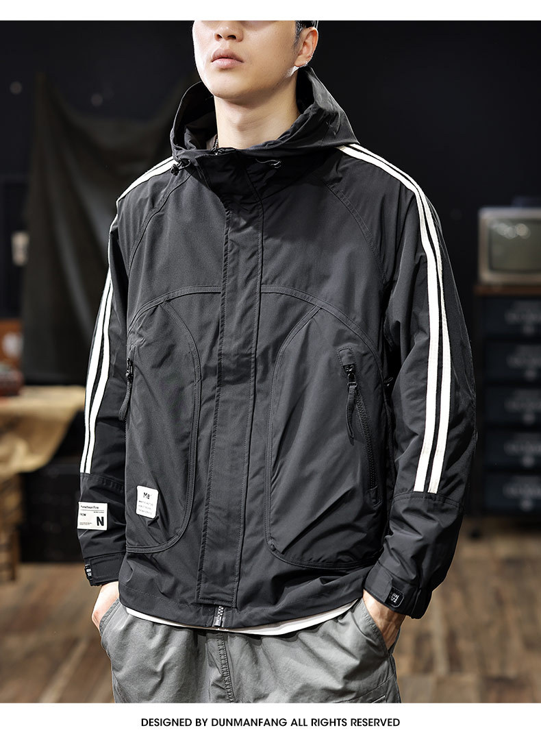 야외 스포츠 하이 엔드 스트라이프 레트로 러쉬 재킷 남자 가을 느슨한 플러스 사이즈 미국 캐주얼 워크 재킷