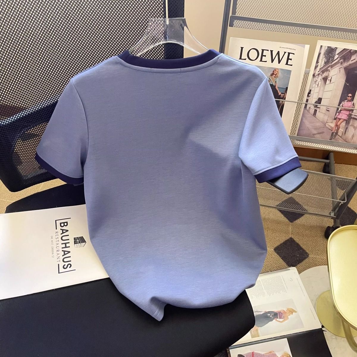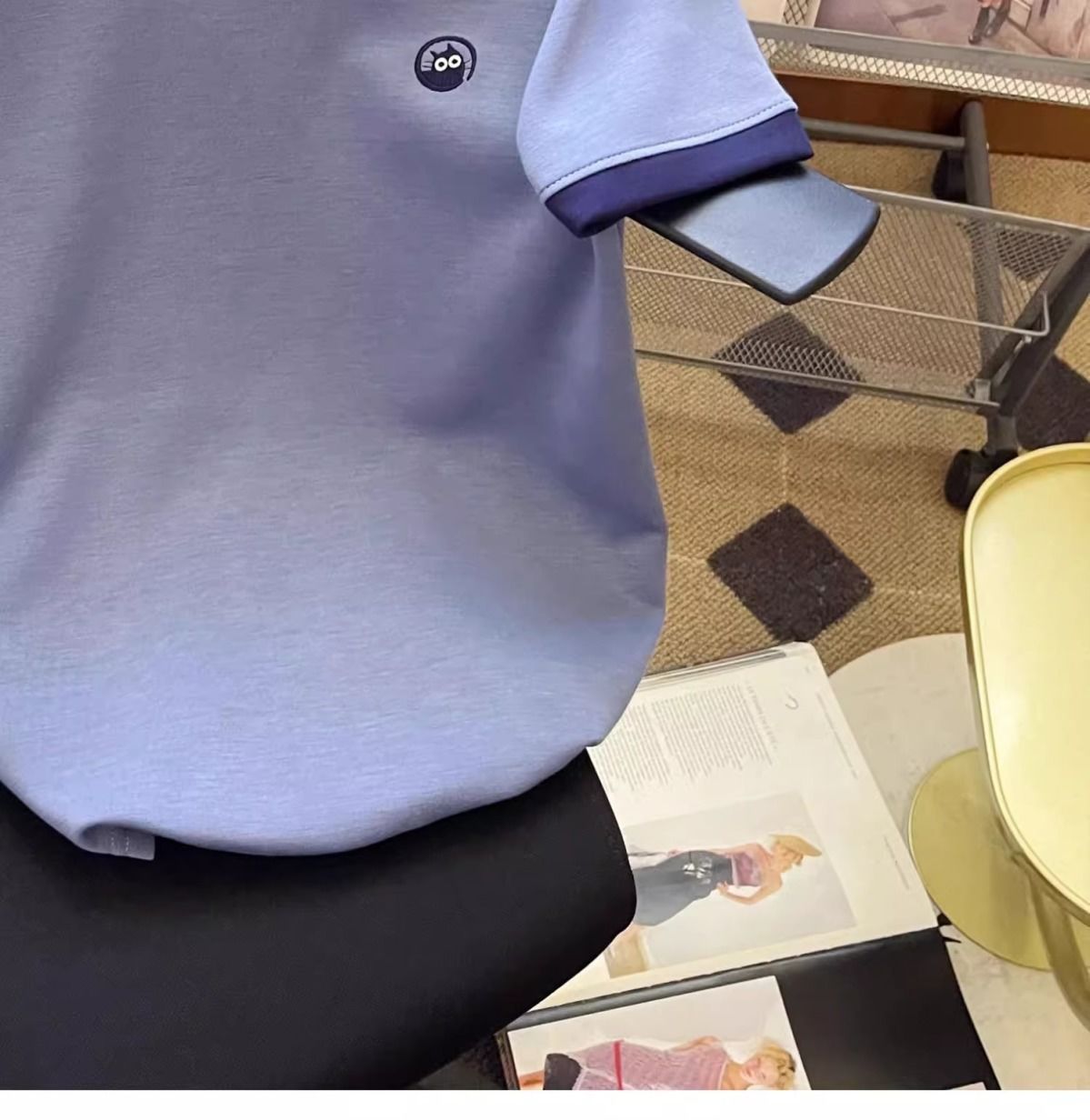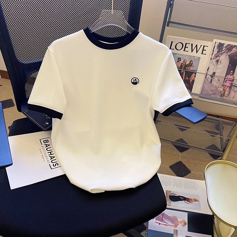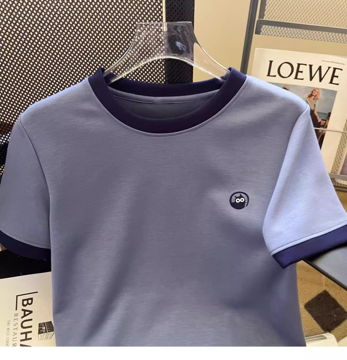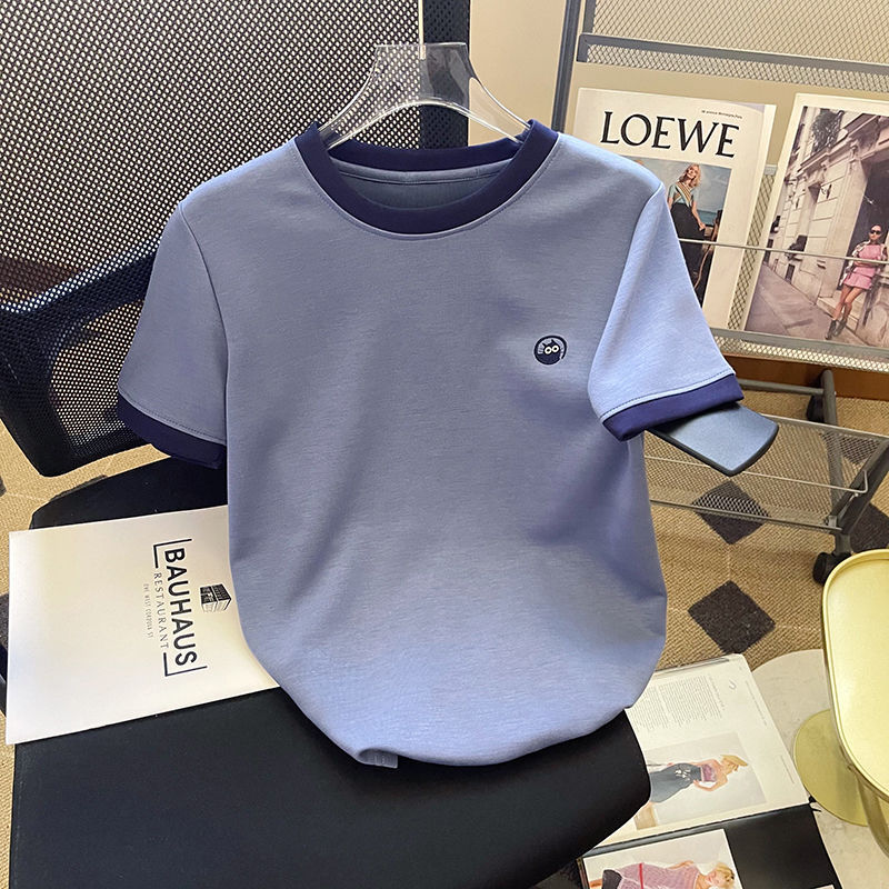 2026년 신상 블루 반팔 티셔츠 여성용 여름 다용도 심플한 디자인 캐주얼 스플라이싱 탑스토어 가기
