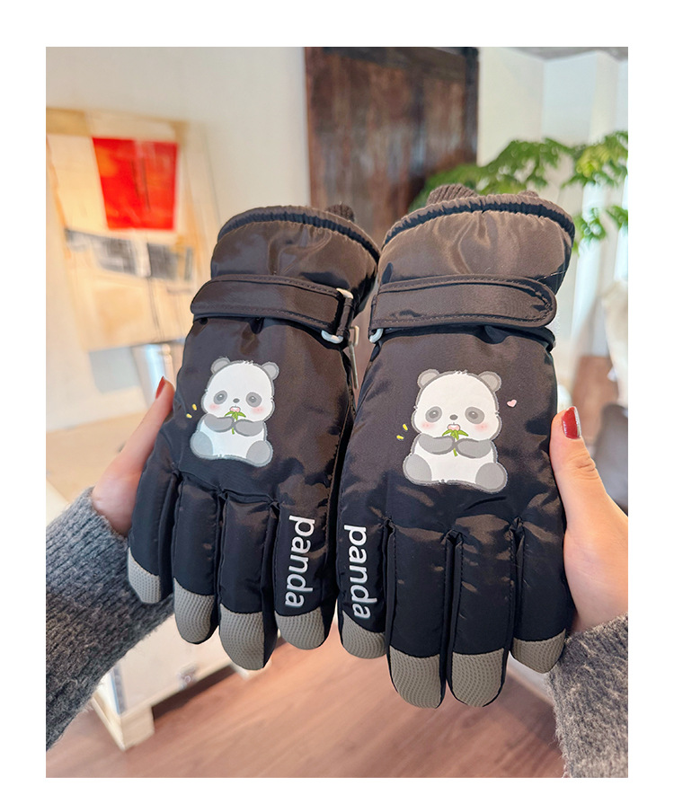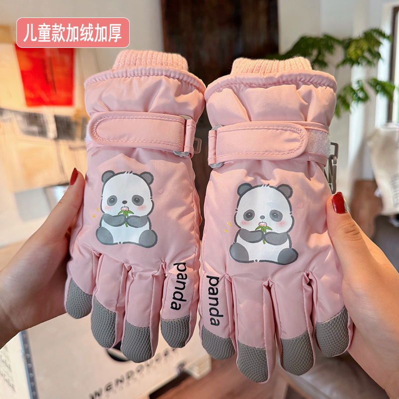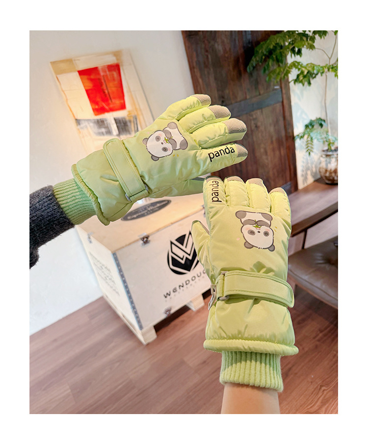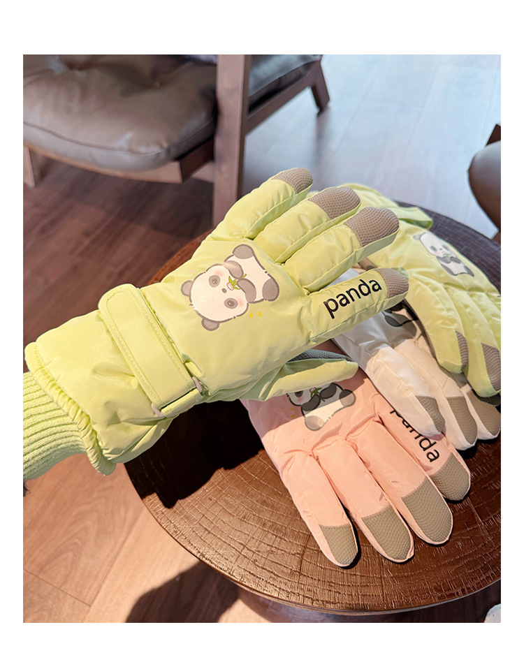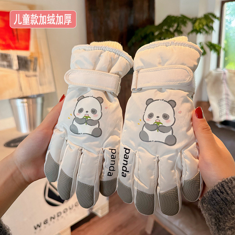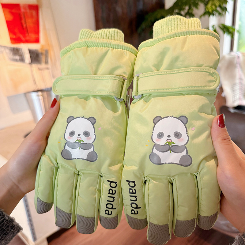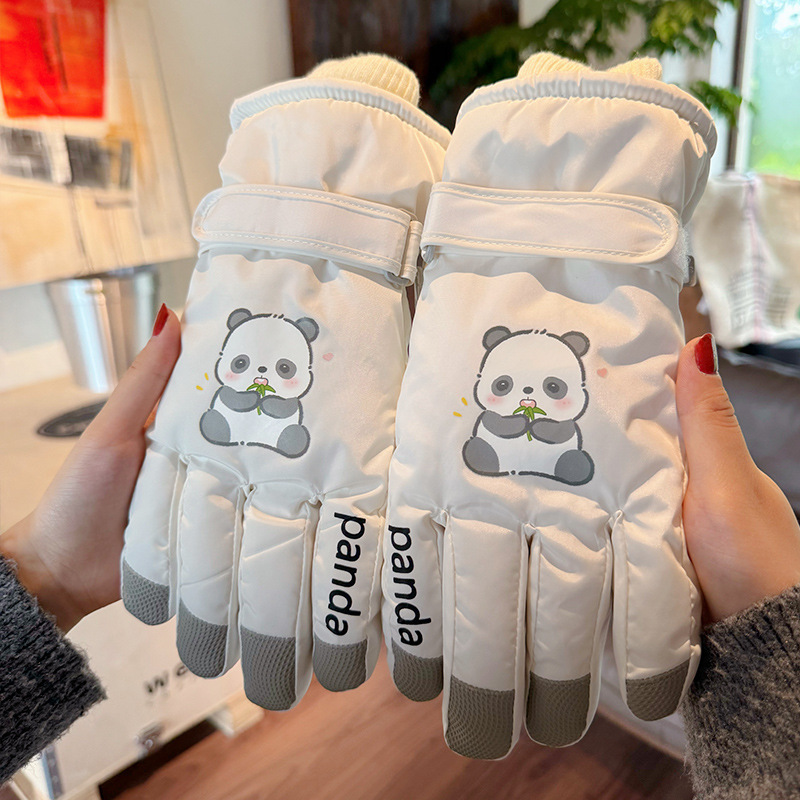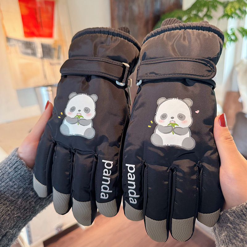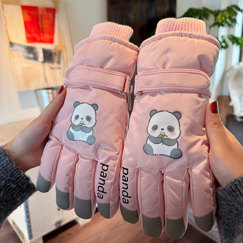 새로운 겨울 스노우 보드 따뜻한 장갑 여성 만화 어린이 학생 기모 방수 라이딩 5 손가락 야외 터치 스크린