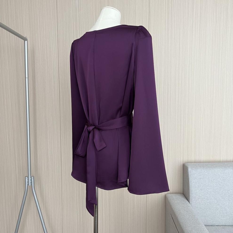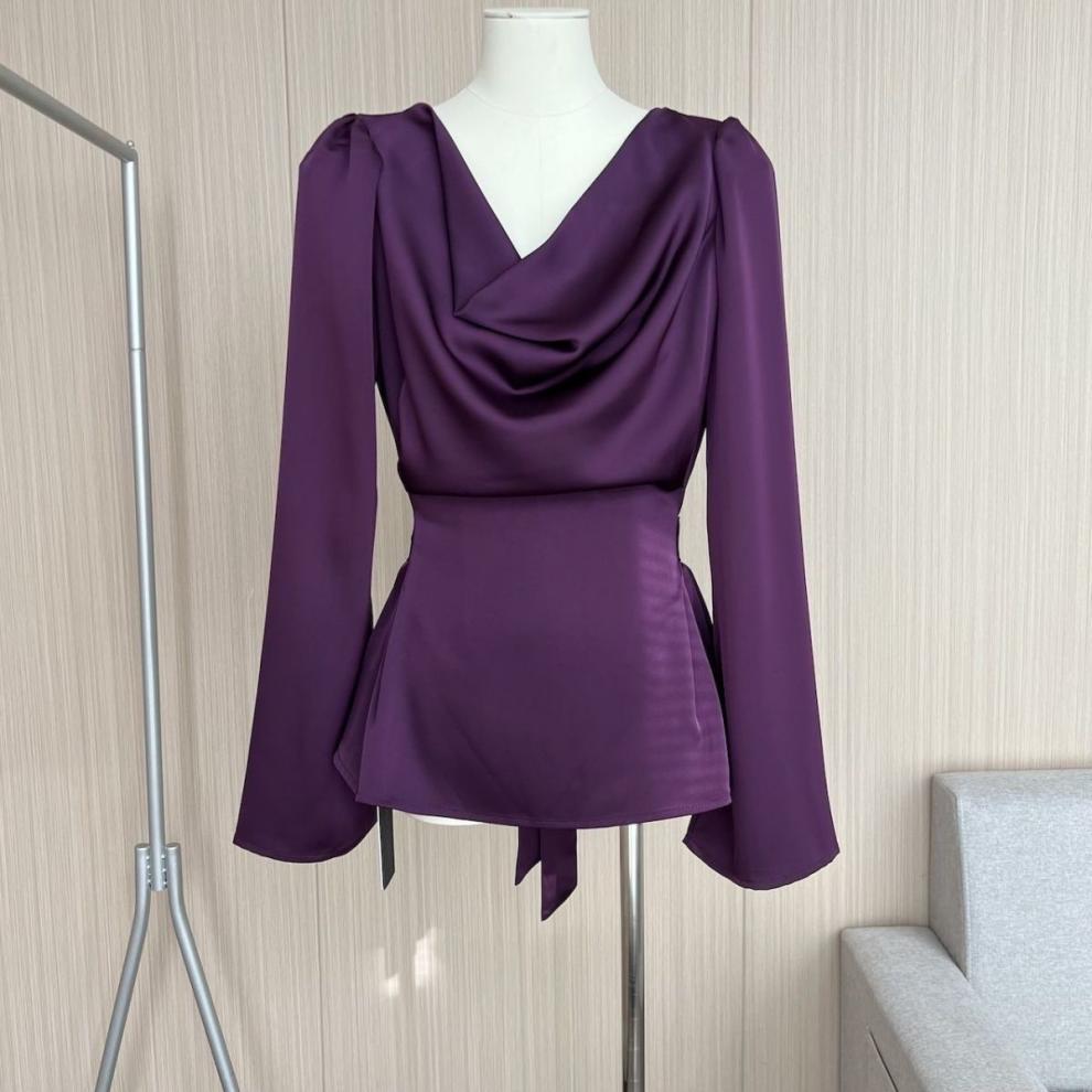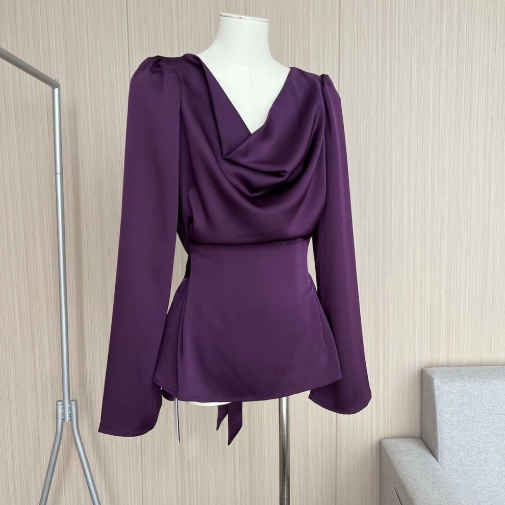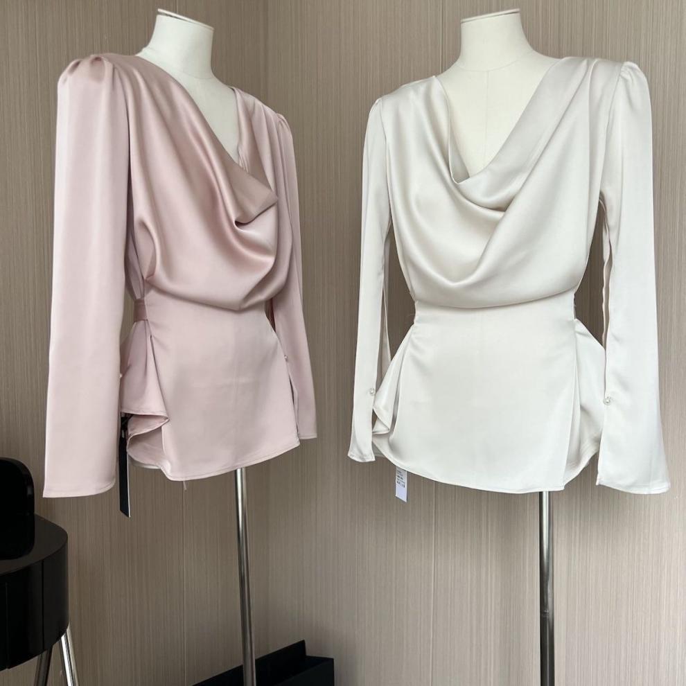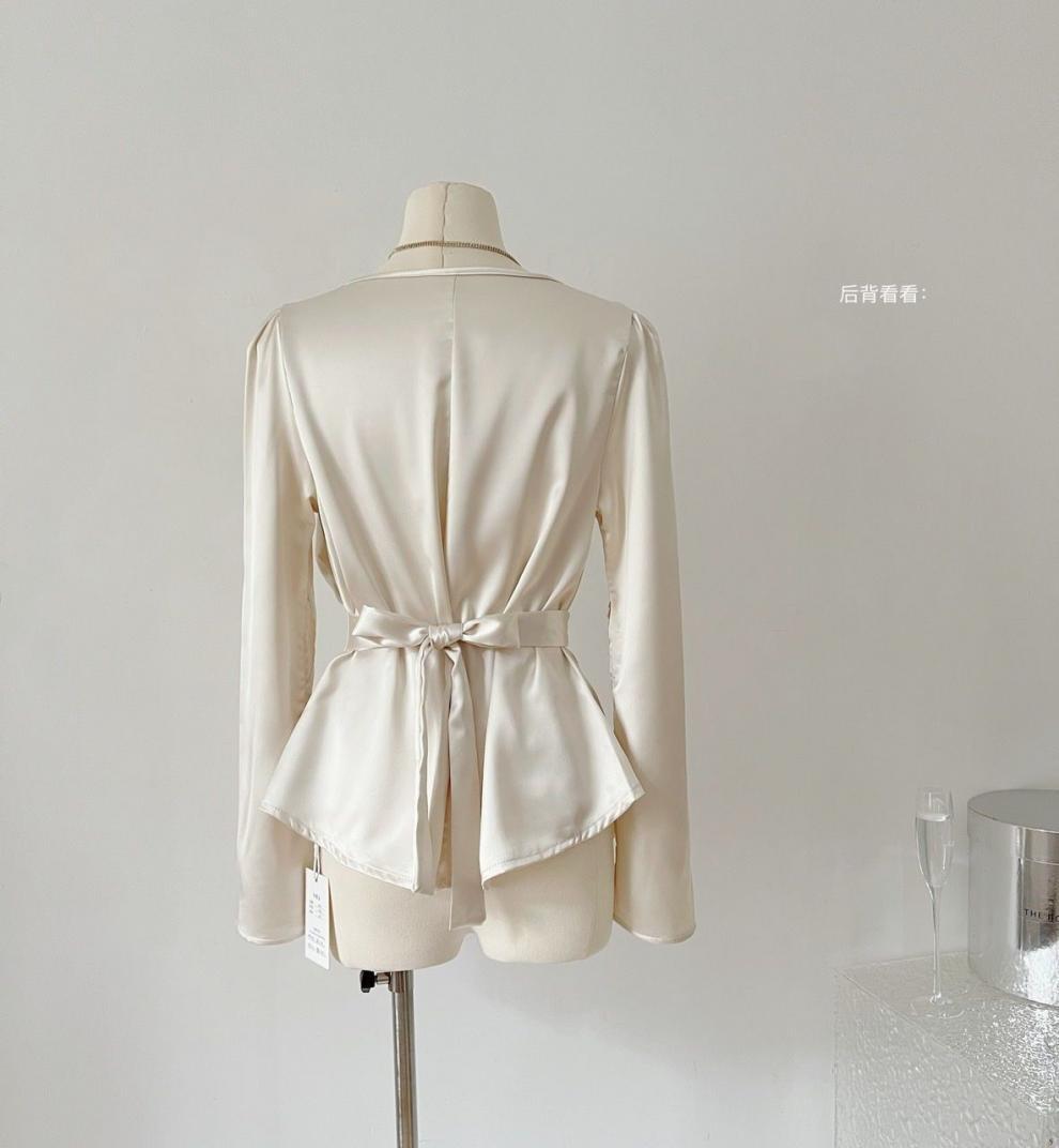 프랑스 새틴 우아한 고급 긴팔 셔츠 여성용 봄 새 스윙 칼라 느슨한 레이스 업 웨이스트 셔츠 탑스토어 가기