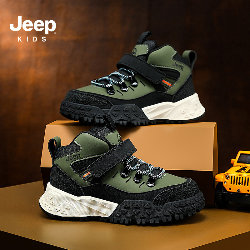 지프 소년 신발 2024 가을과 겨울 새로운 가죽 방수 운동화 편안한 경량 소녀 신발 하이 탑 벨크로