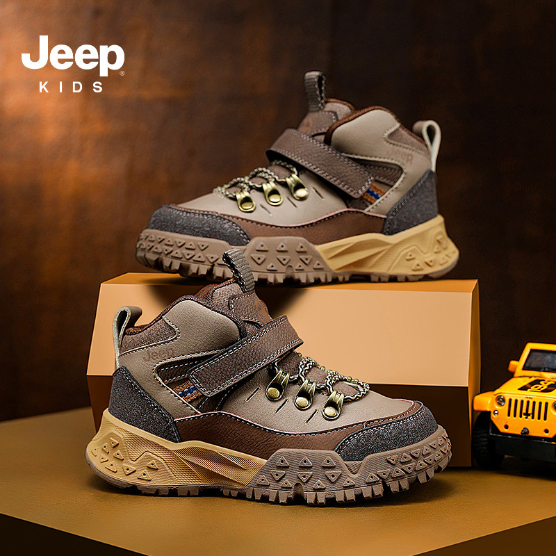 지프 소년 신발 2024 가을과 겨울 새로운 가죽 방수 운동화 편안한 경량 소녀 신발 하이 탑 벨크로스토어 가기
