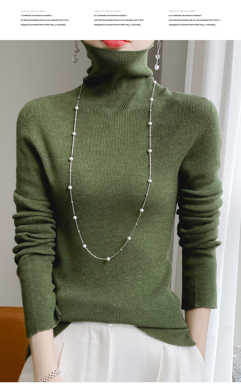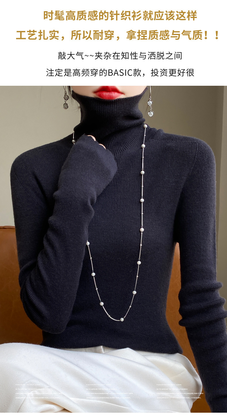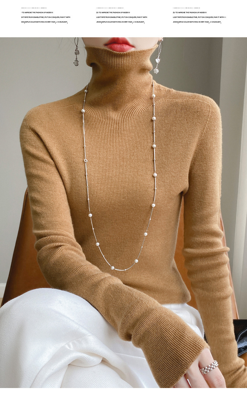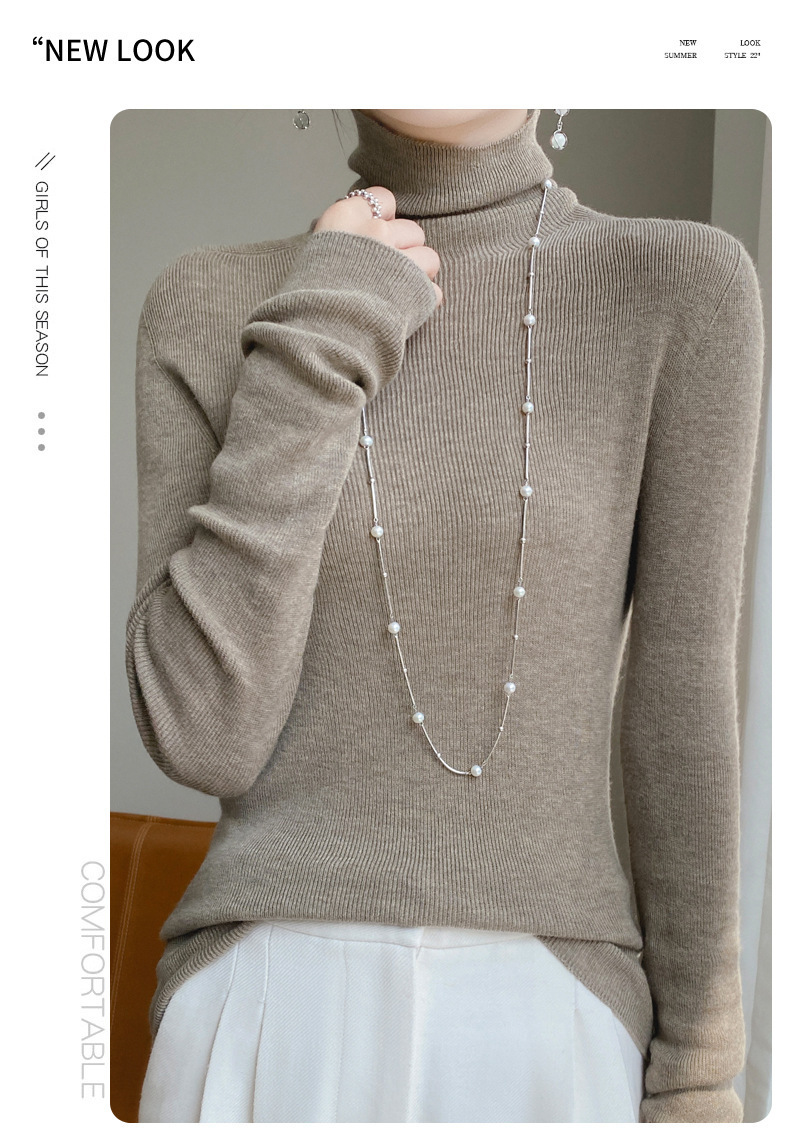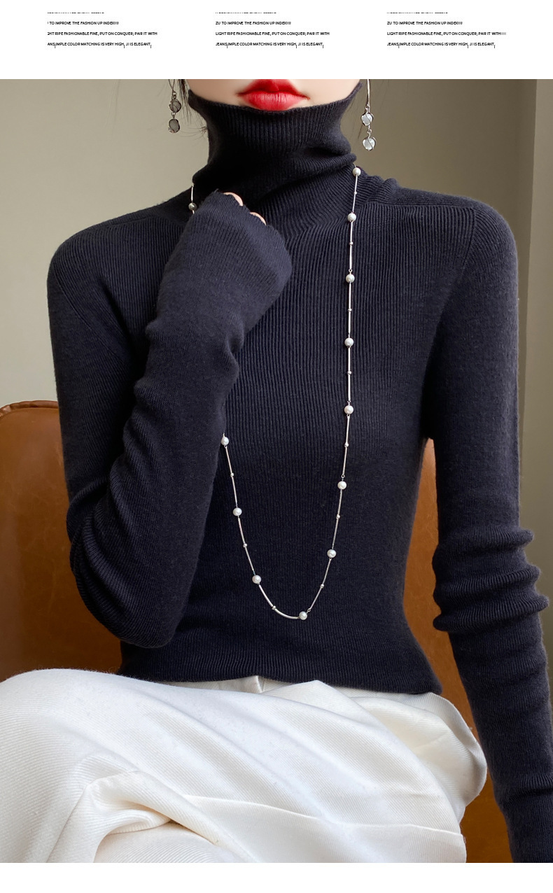 마이크로 투명 얇은 양모베이스 셔츠 높은 칼라 슬림 핏 스웨터 여성용 더미 칼라 우아한 슬림베이스 셔츠 내부 탑스토어 가기