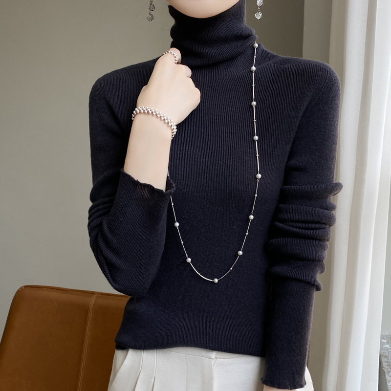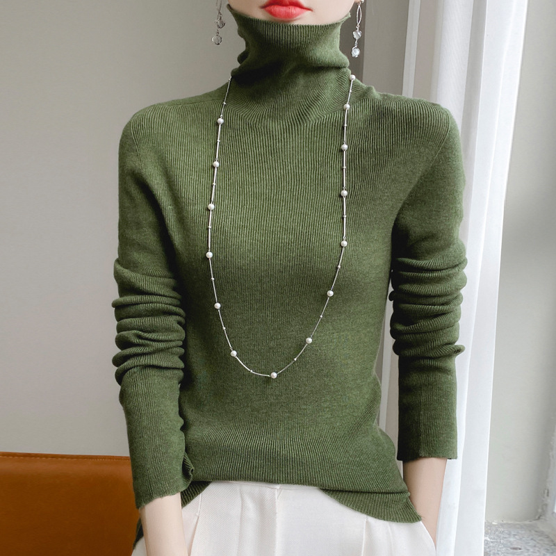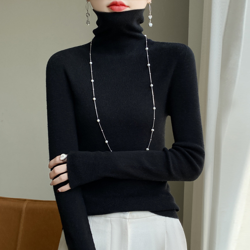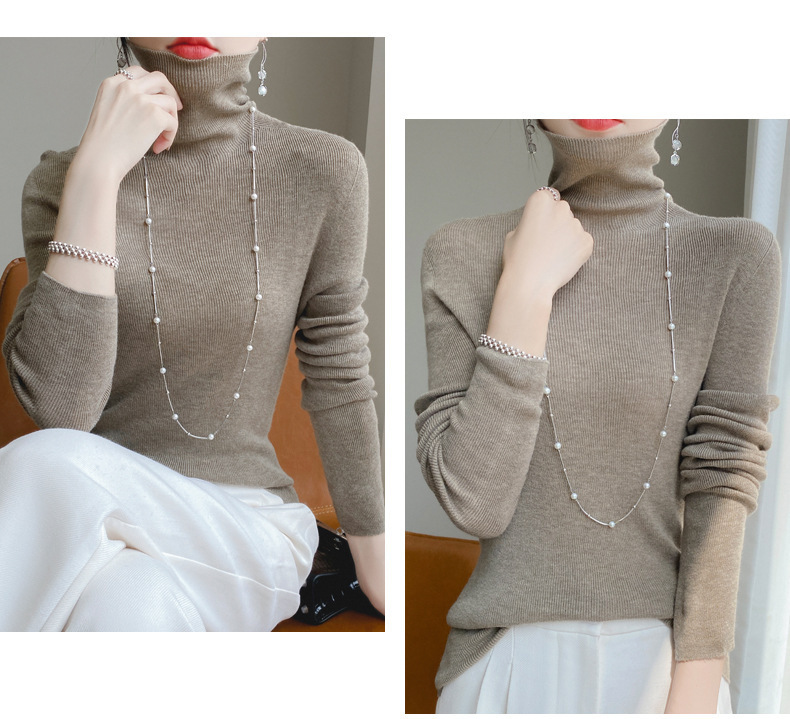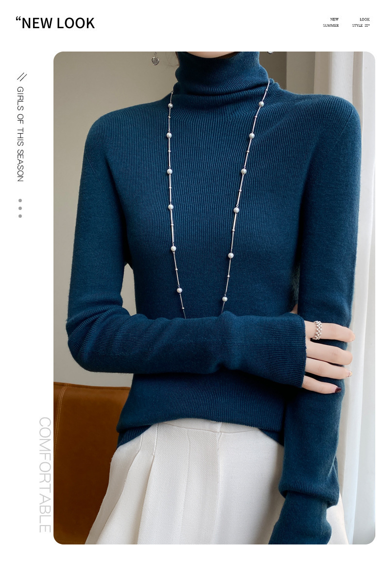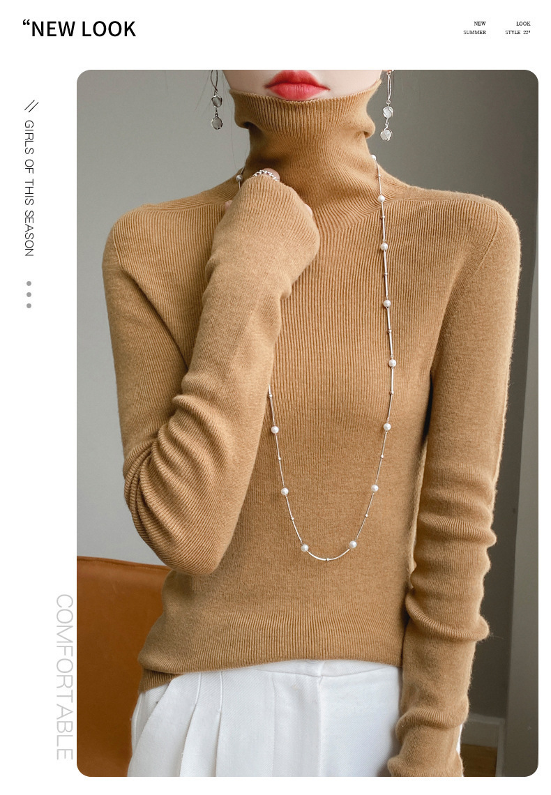 마이크로 투명 얇은 양모베이스 셔츠 높은 칼라 슬림 핏 스웨터 여성용 더미 칼라 우아한 슬림베이스 셔츠 내부 탑스토어 가기