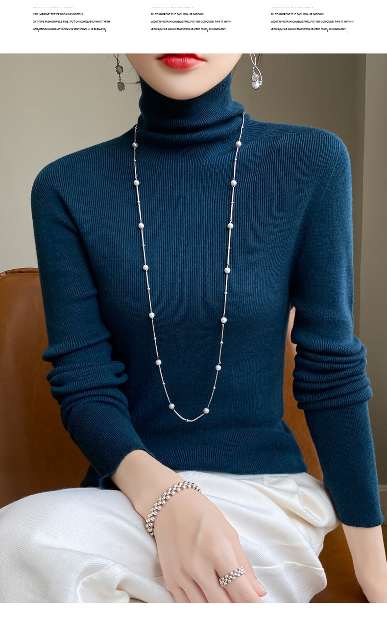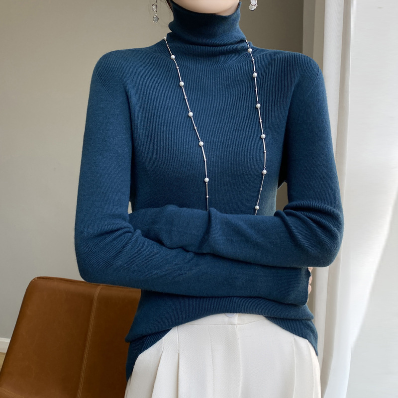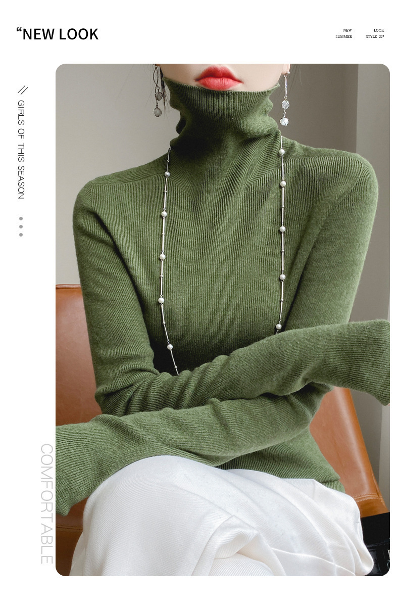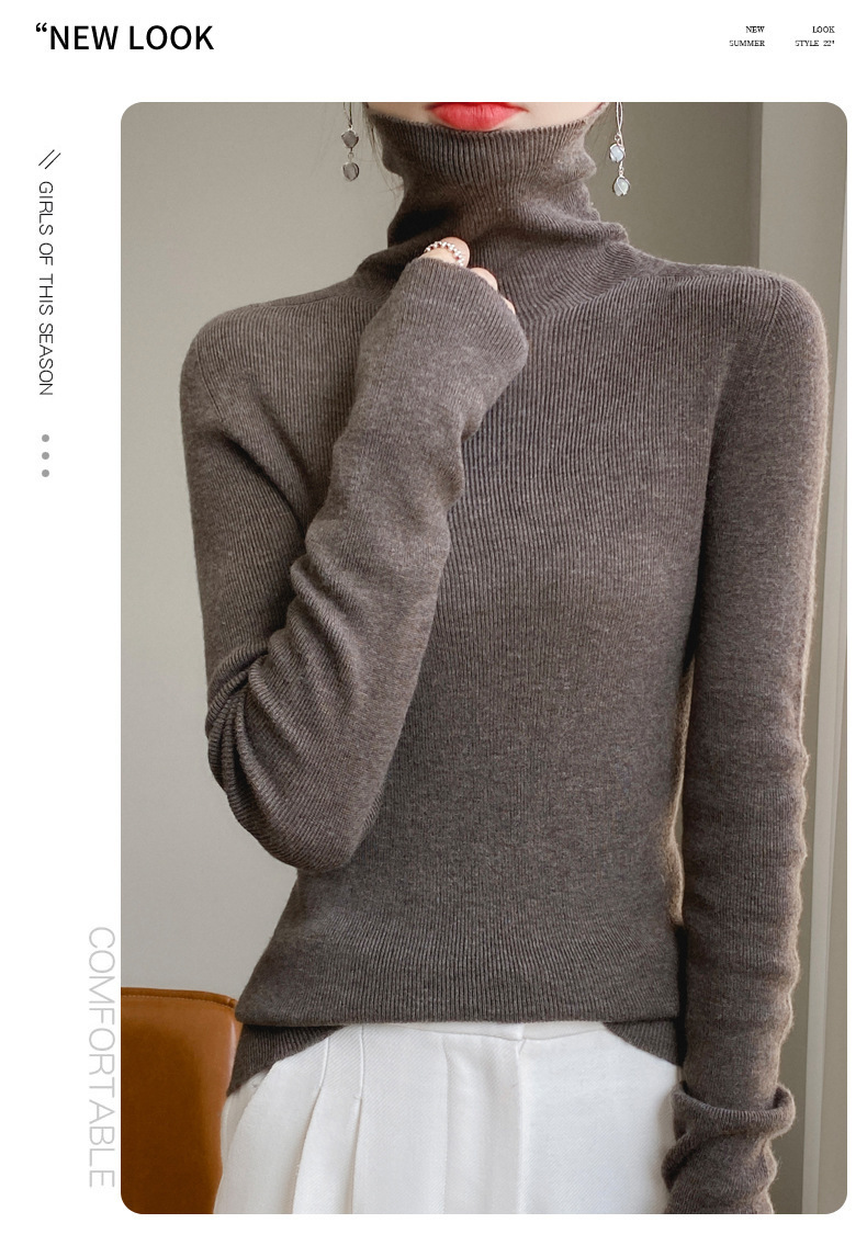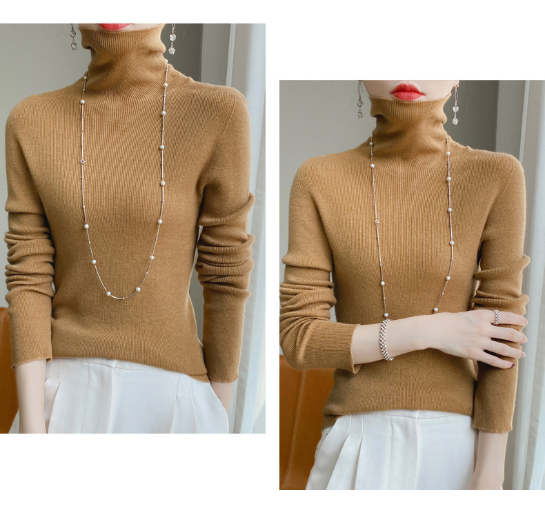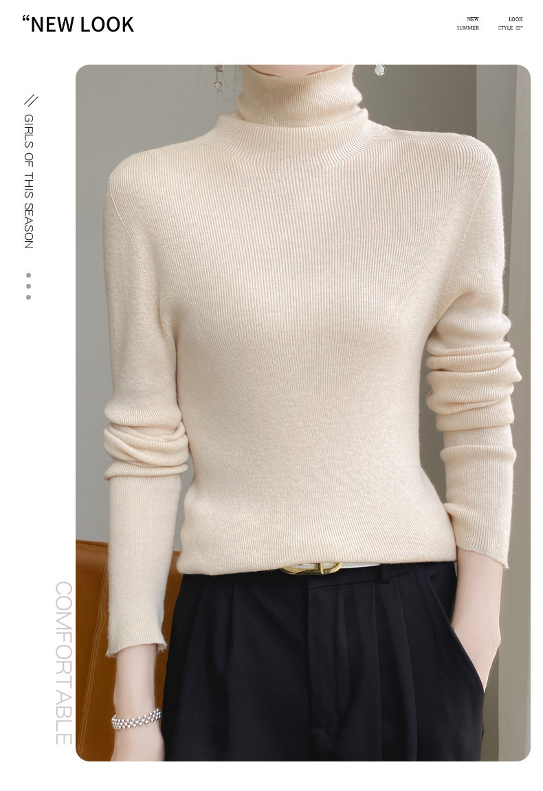 마이크로 투명 얇은 양모베이스 셔츠 높은 칼라 슬림 핏 스웨터 여성용 더미 칼라 우아한 슬림베이스 셔츠 내부 탑스토어 가기