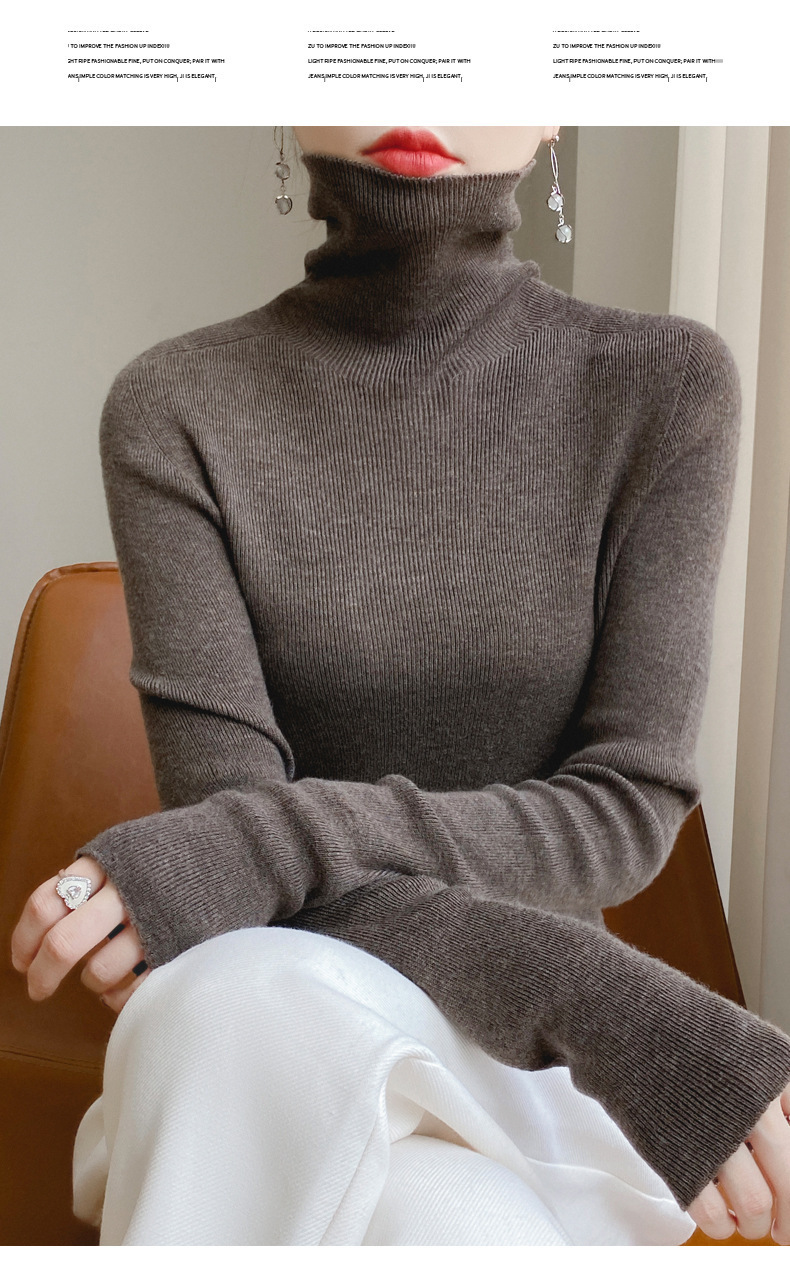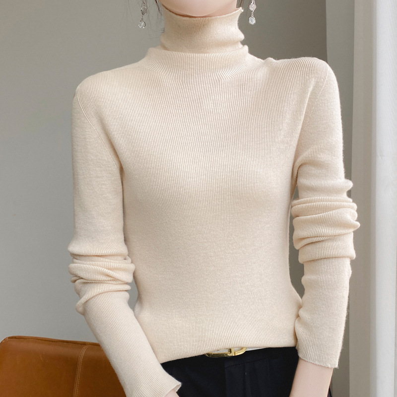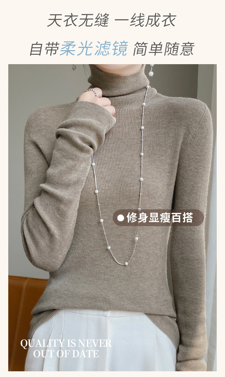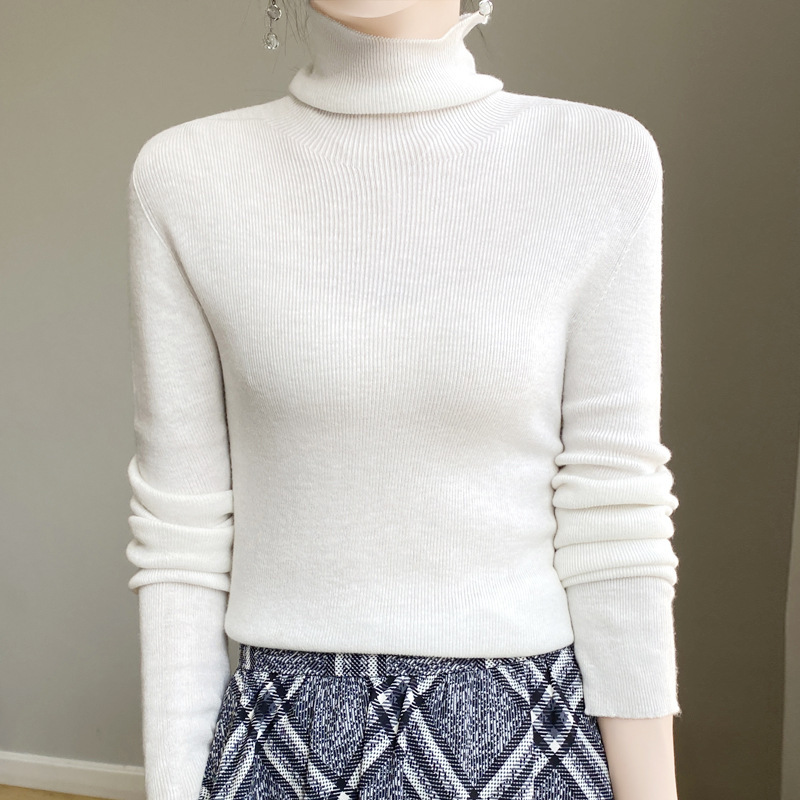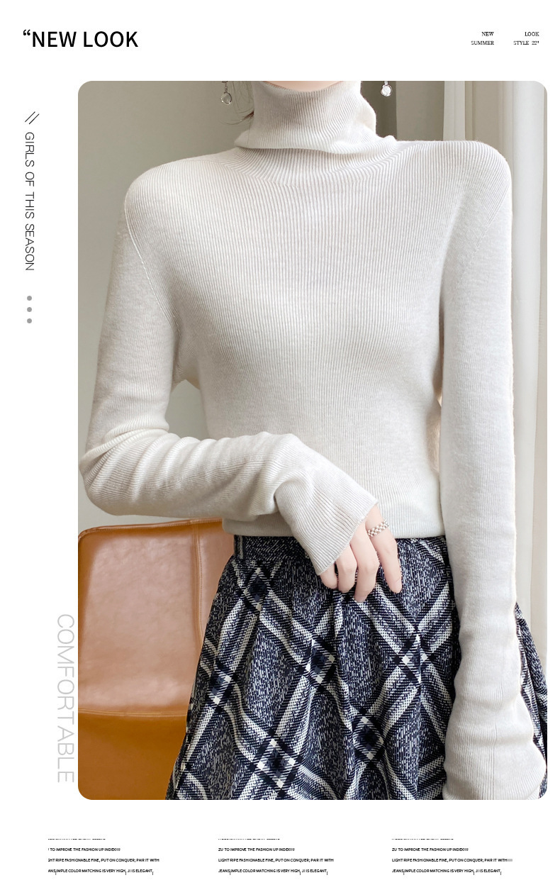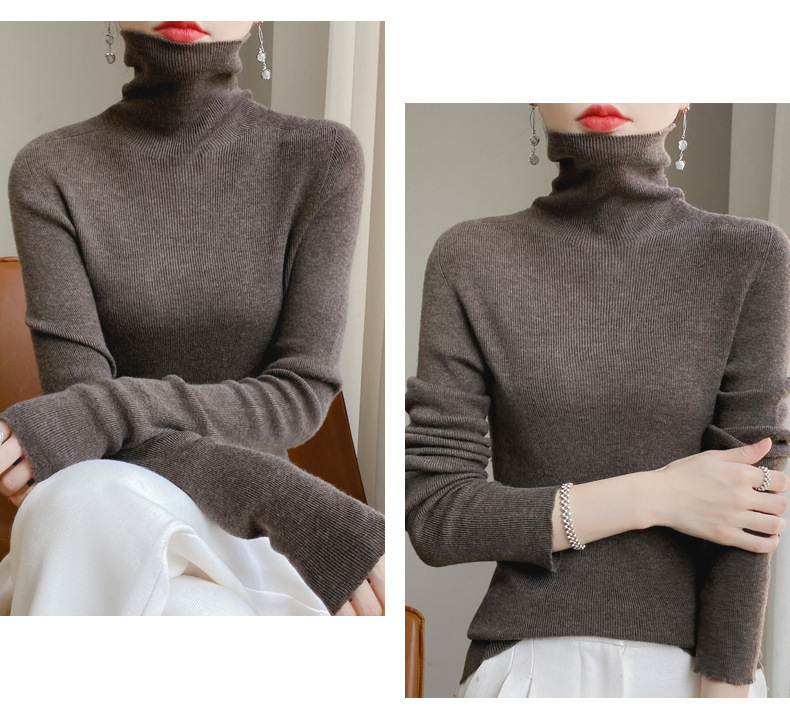 마이크로 투명 얇은 양모베이스 셔츠 높은 칼라 슬림 핏 스웨터 여성용 더미 칼라 우아한 슬림베이스 셔츠 내부 탑스토어 가기