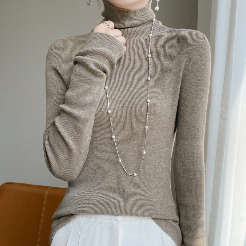 마이크로 투명 얇은 양모베이스 셔츠 높은 칼라 슬림 핏 스웨터 여성용 더미 칼라 우아한 슬림베이스 셔츠 내부 탑