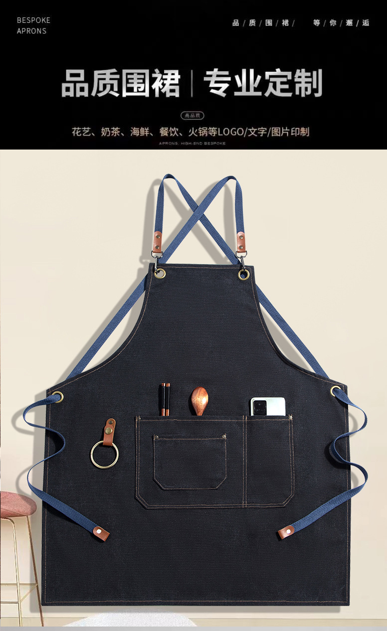 앞치마 도매 데님 기름 및 먼지 증거 대외 무역 커피 미용실 광고 남성과 여성 작업 앞치마 국경