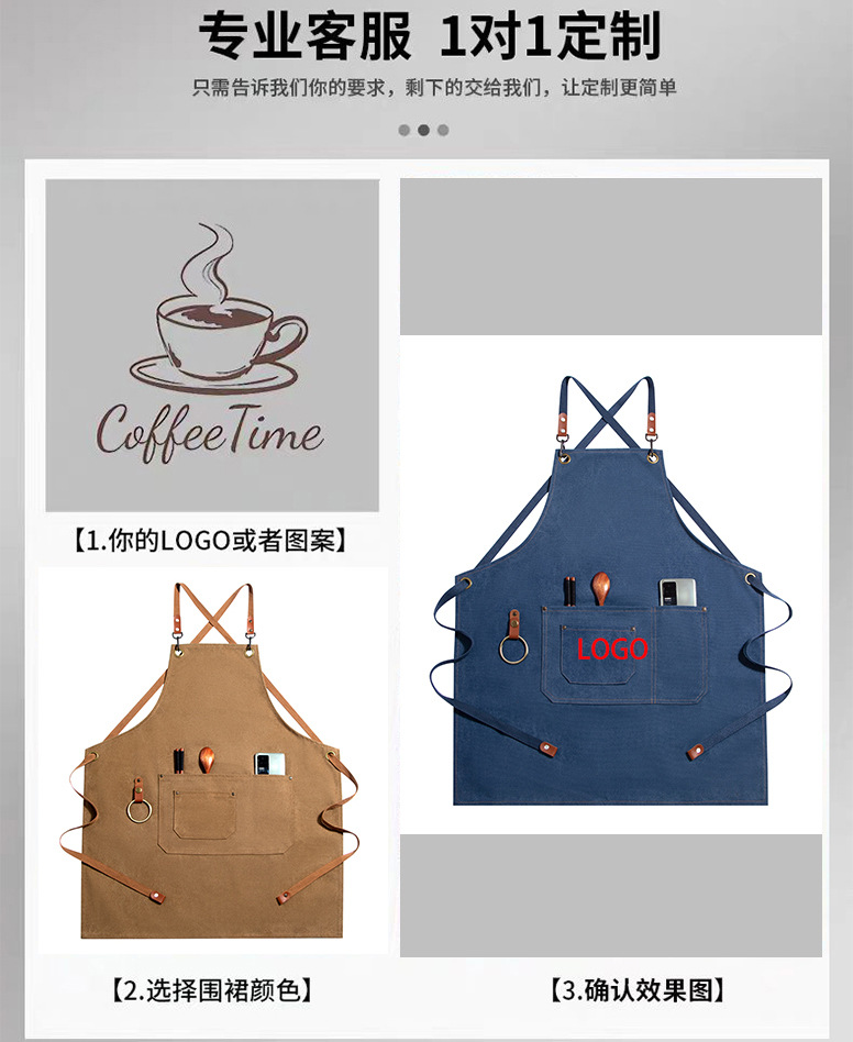 앞치마 도매 데님 기름 및 먼지 증거 대외 무역 커피 미용실 광고 남성과 여성 작업 앞치마 국경스토어 가기