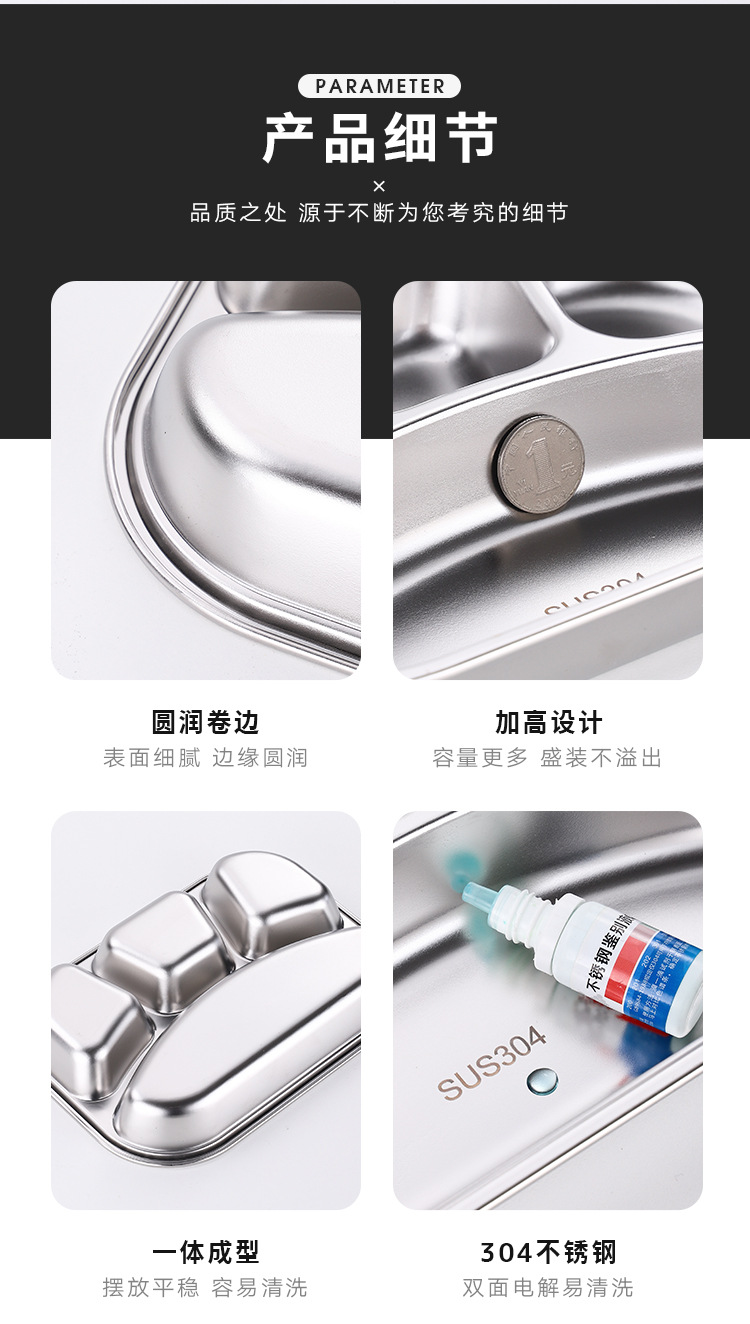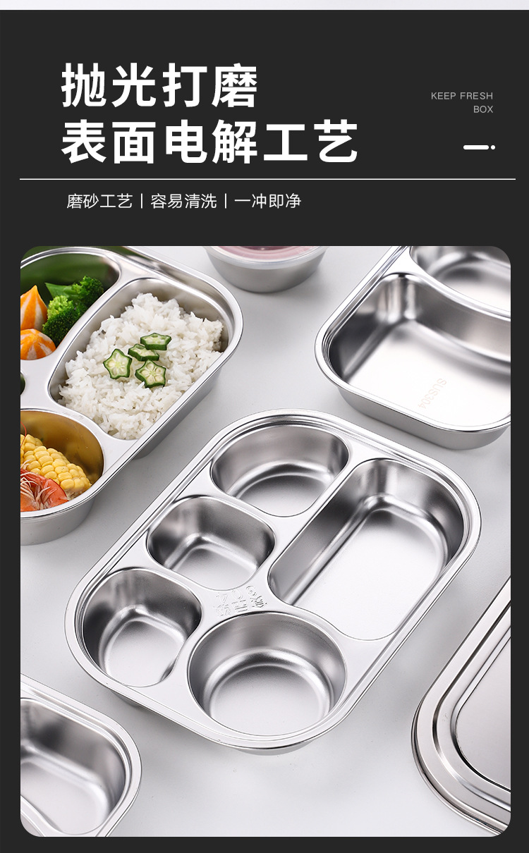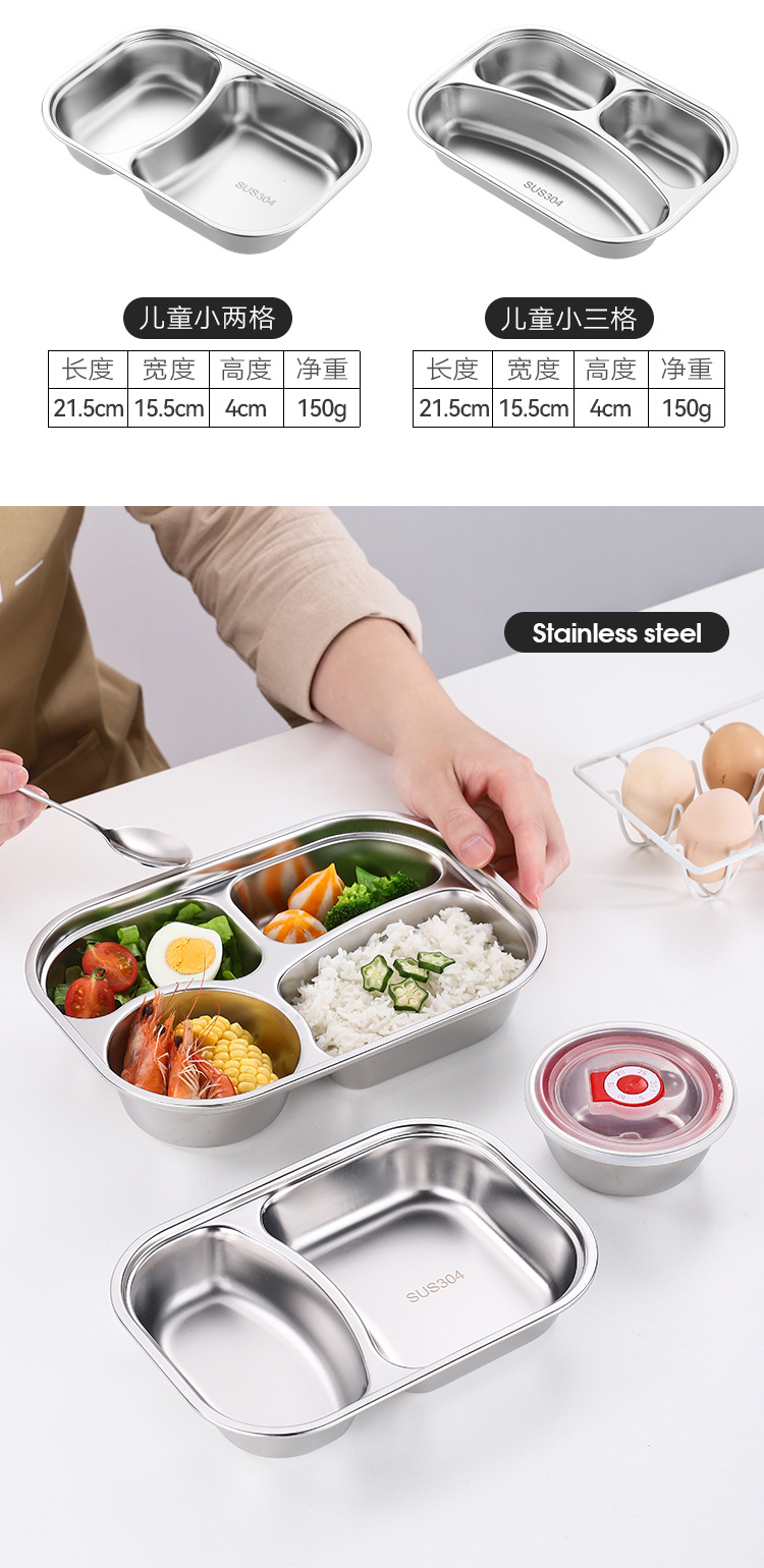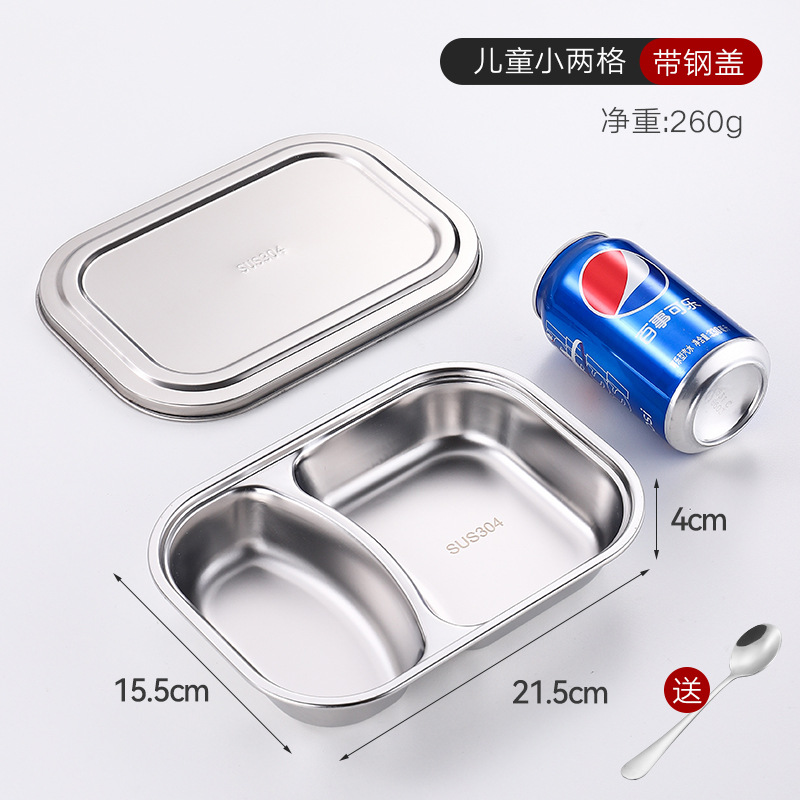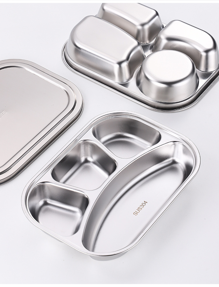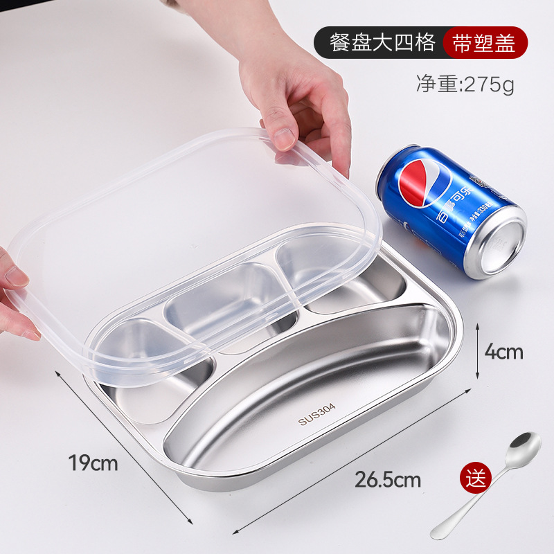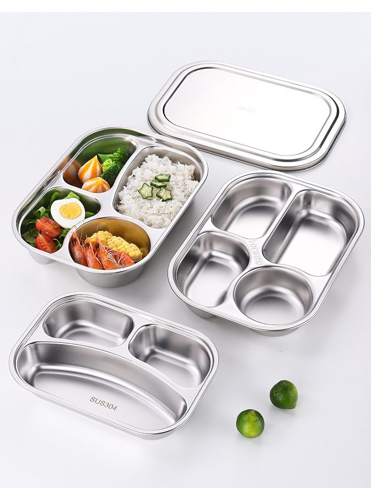 식품 등급 304 스테인리스 식판 도시락 칸막이 패스트푸드 접시 뚜껑 포함 학교 식당 도시락 트레이