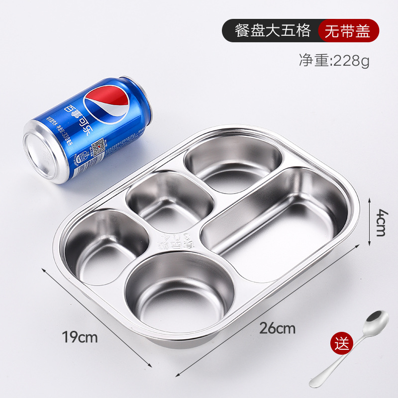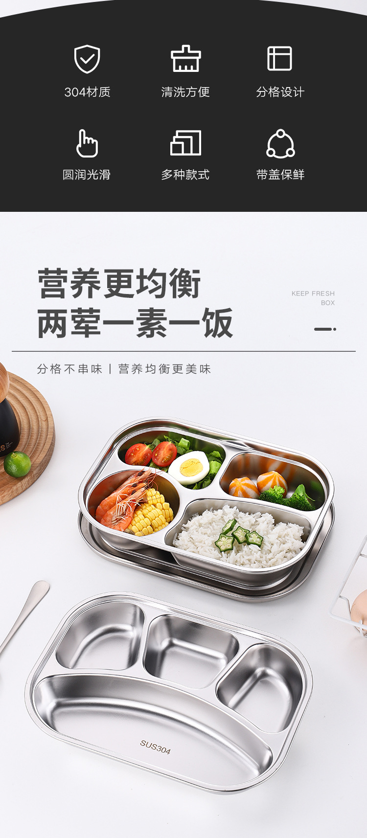 식품 등급 304 스테인리스 식판 도시락 칸막이 패스트푸드 접시 뚜껑 포함 학교 식당 도시락 트레이스토어 가기