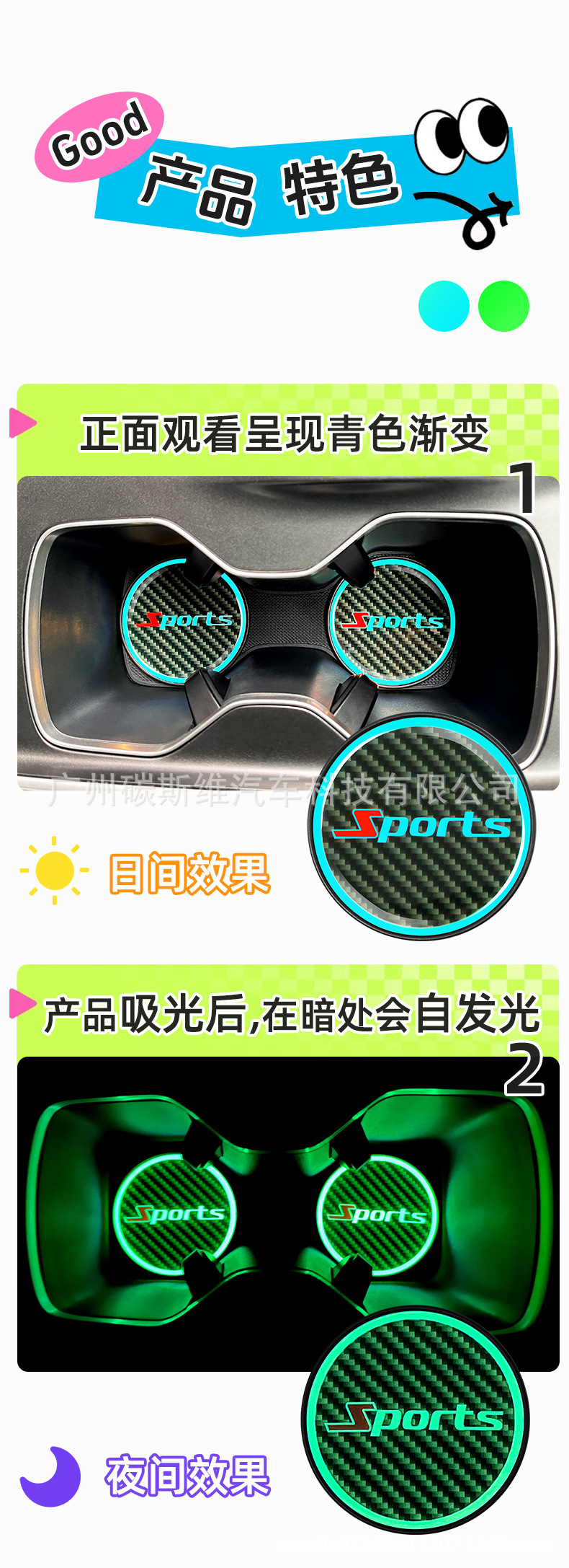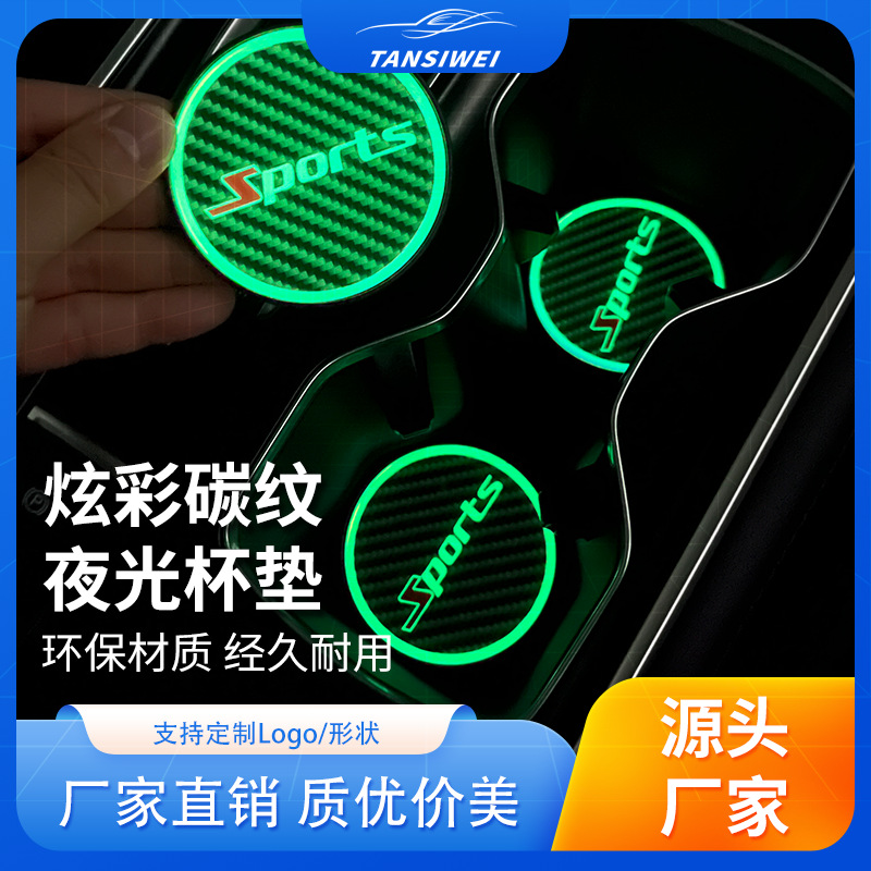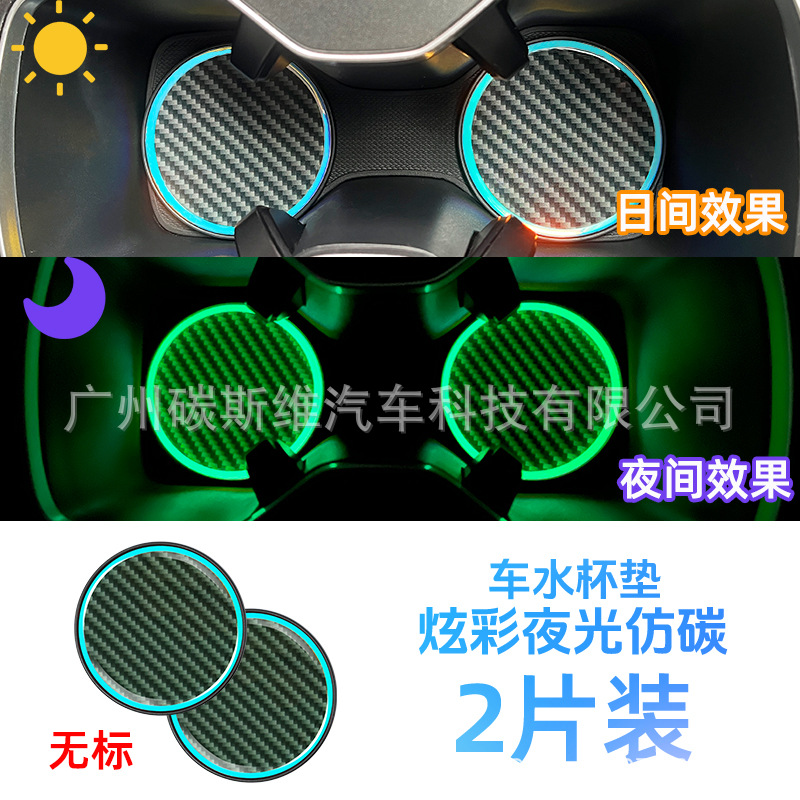 국경 새로운 탄소 섬유 패턴 자동차 발광 컵 패드 맞춤형 라운드 범용 럭셔리카 로고 인테리어 제품스토어 가기