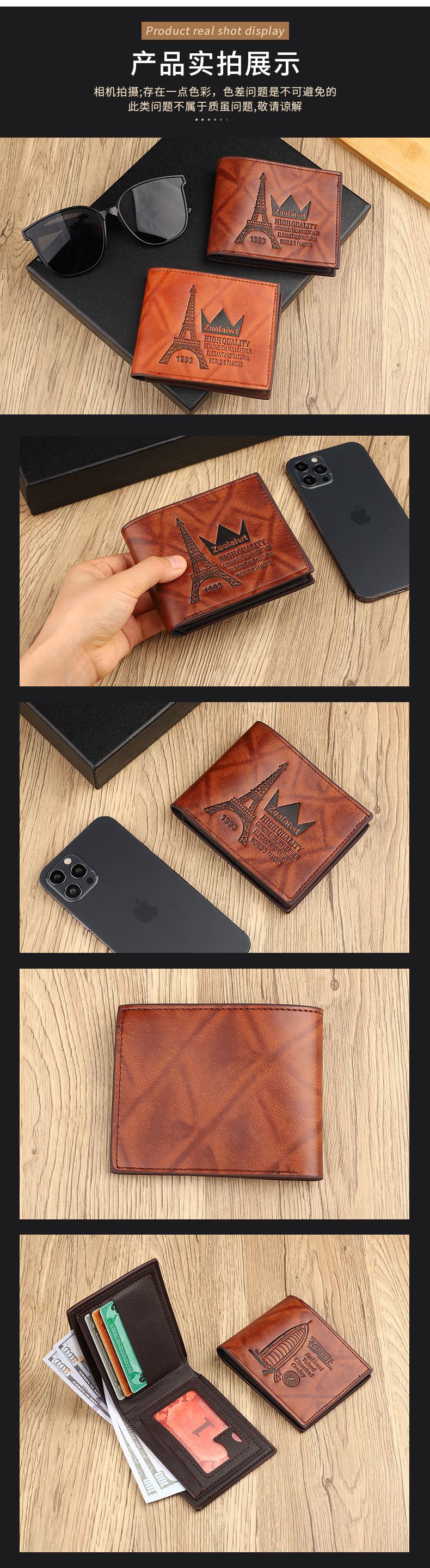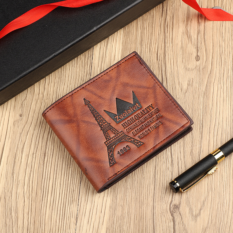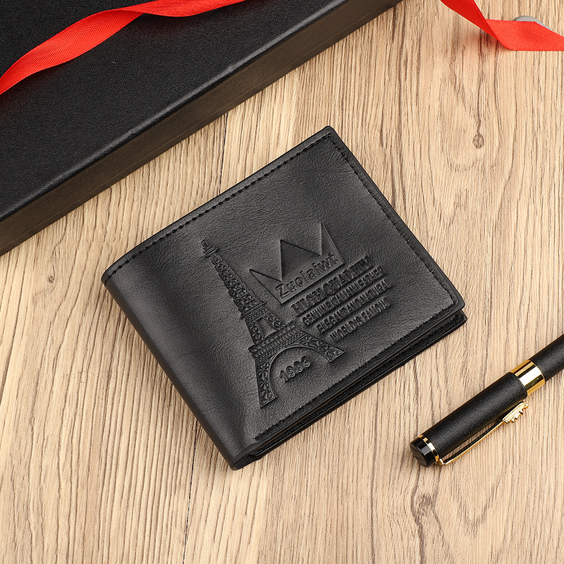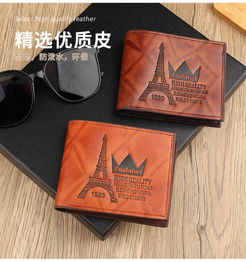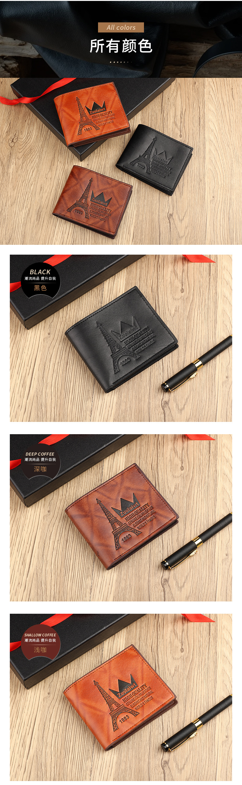 아마존 국경 뜨거운 남자 지갑 짧은 작은 카드 가방 파리 에펠 탑 양각 지갑 동전 지갑스토어 가기