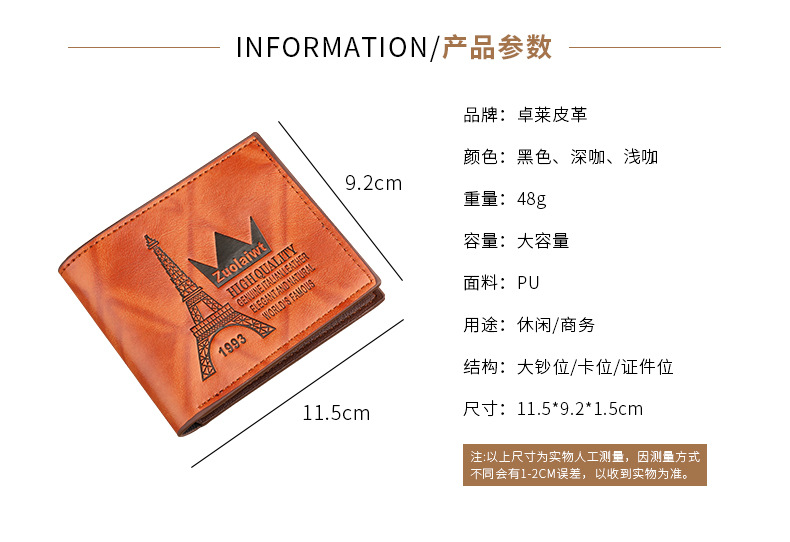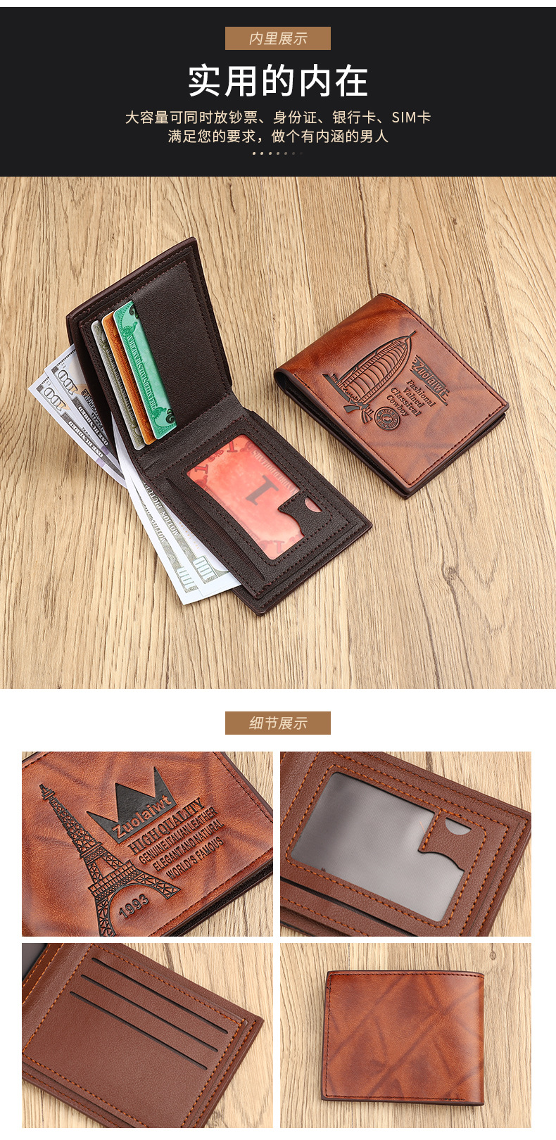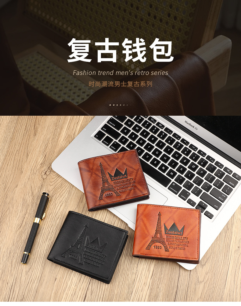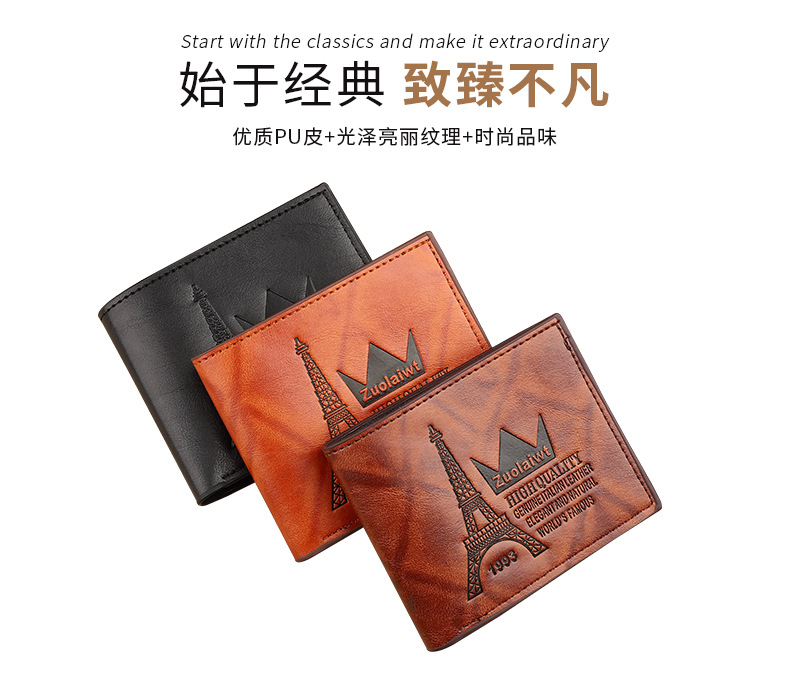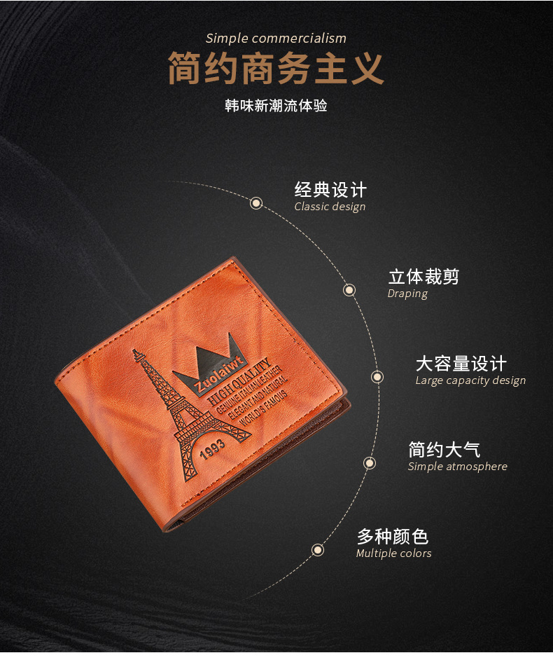 아마존 국경 뜨거운 남자 지갑 짧은 작은 카드 가방 파리 에펠 탑 양각 지갑 동전 지갑스토어 가기