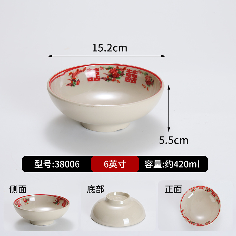 • 370555. 5inch Double Happiness 그릇 강화 멜라민/낙하에 대한 저항력이 더 강함