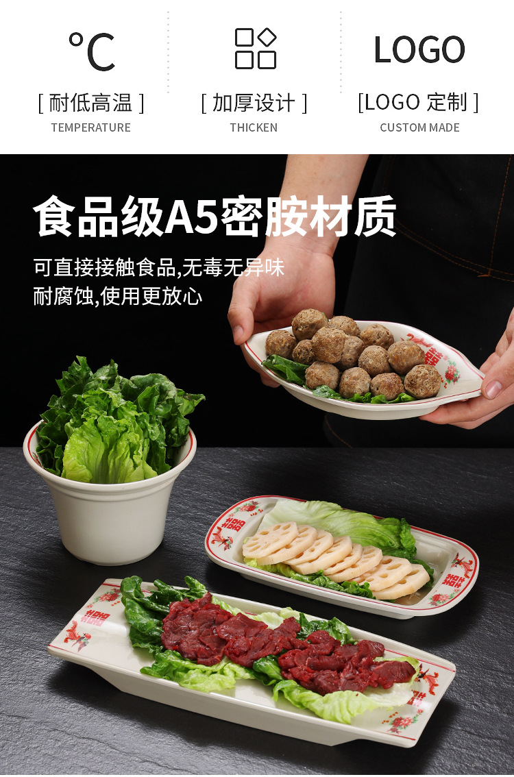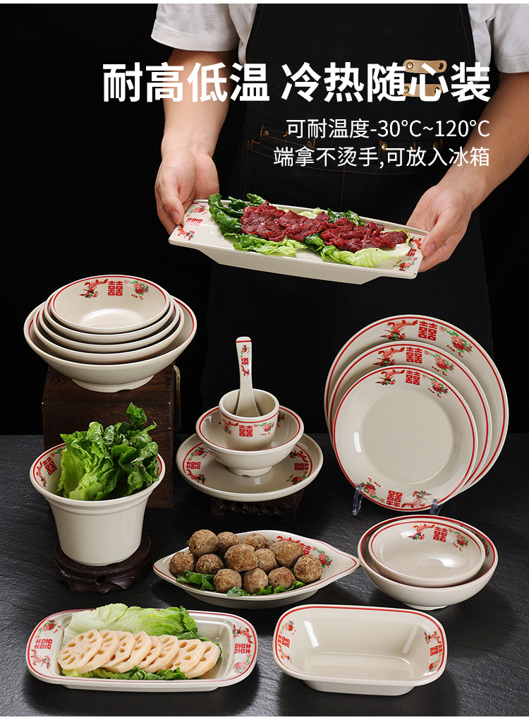 멜라민 더블 행복 냄비 레스토랑 식기 복고풍 행복한 단어 그릇 향수를 불러 일으키는 오래된 냄비 접시 오래된 스토브 타입 플레이트 상업